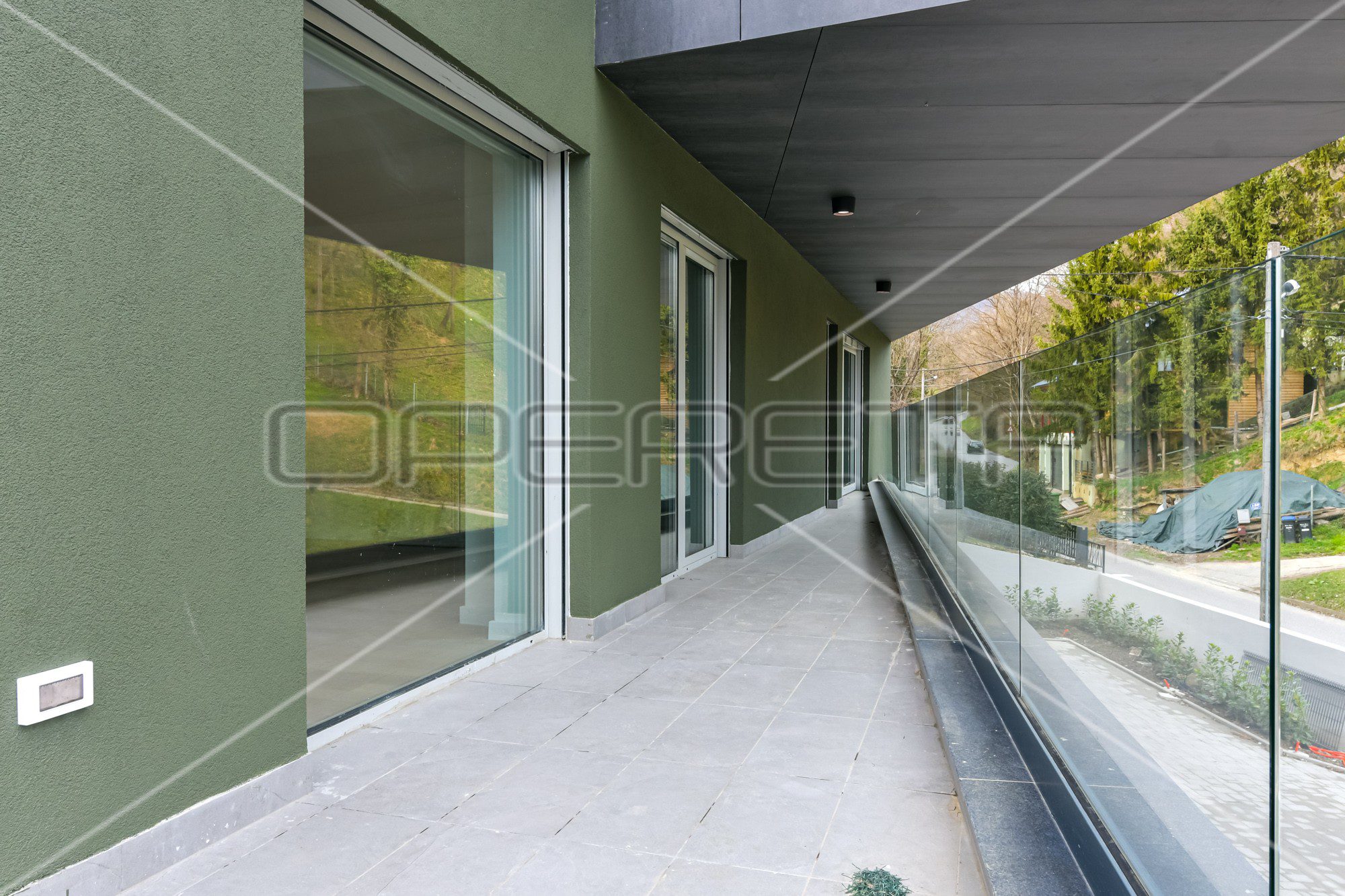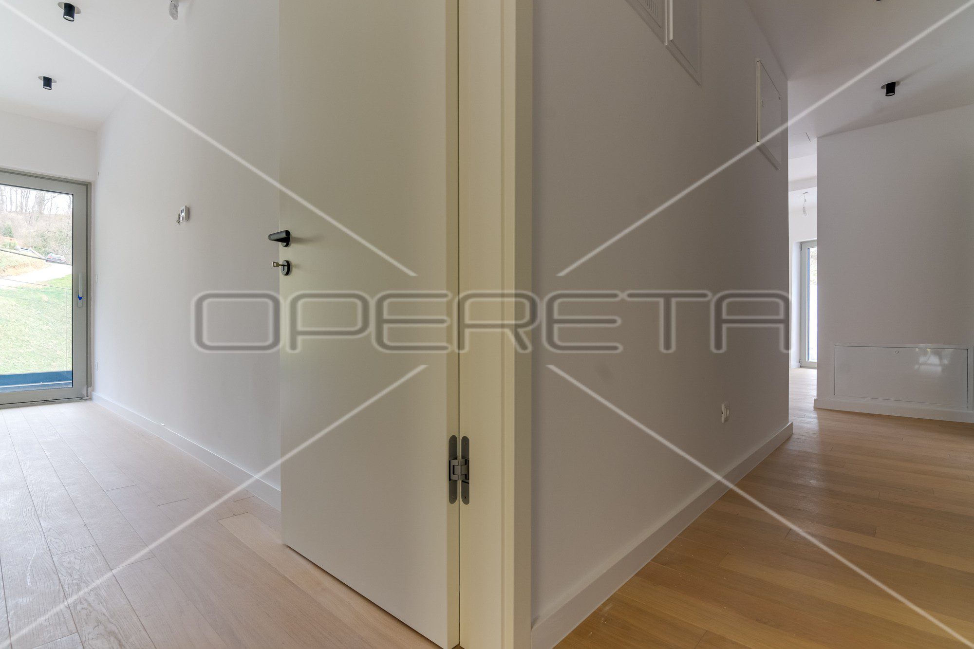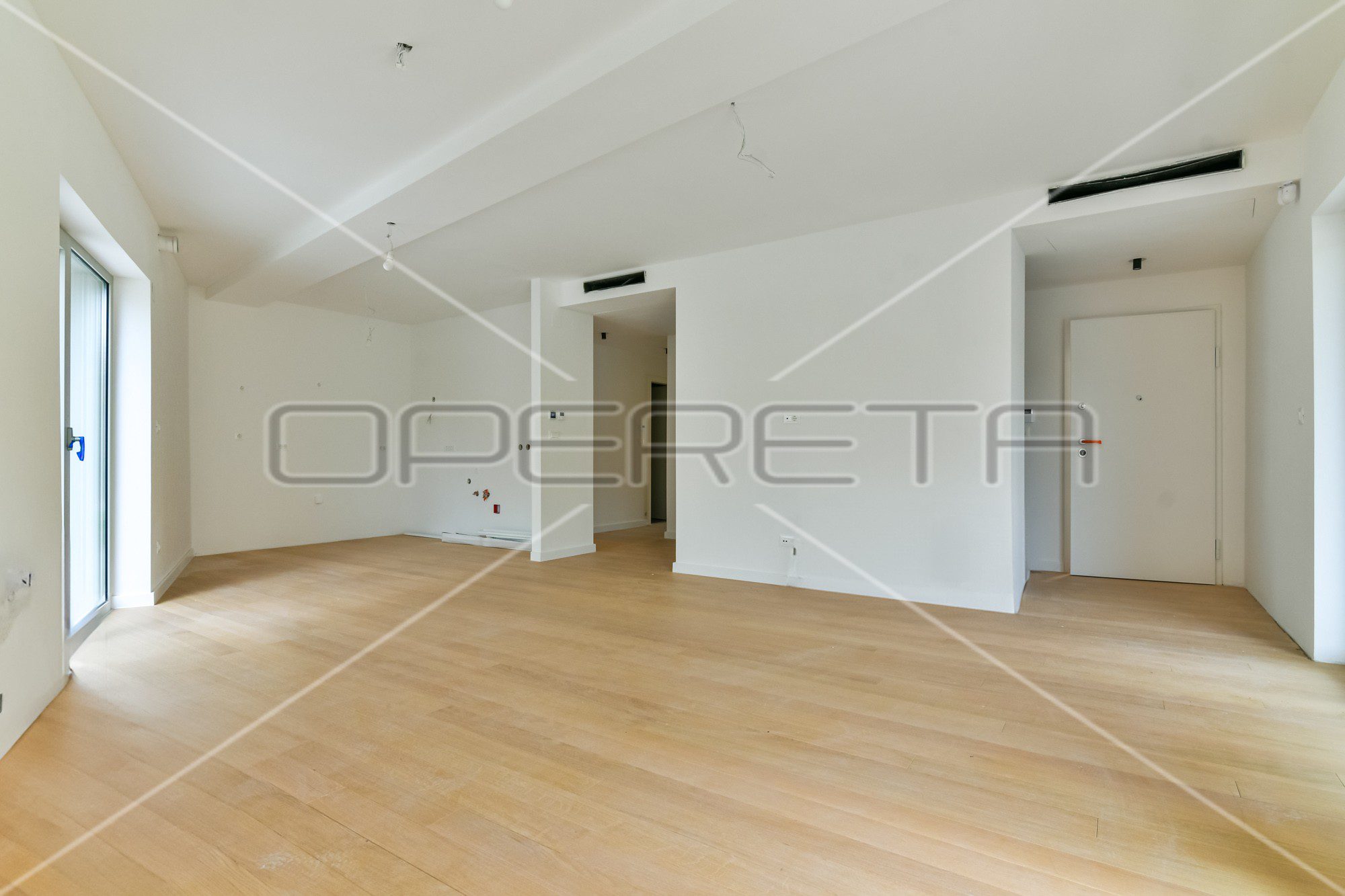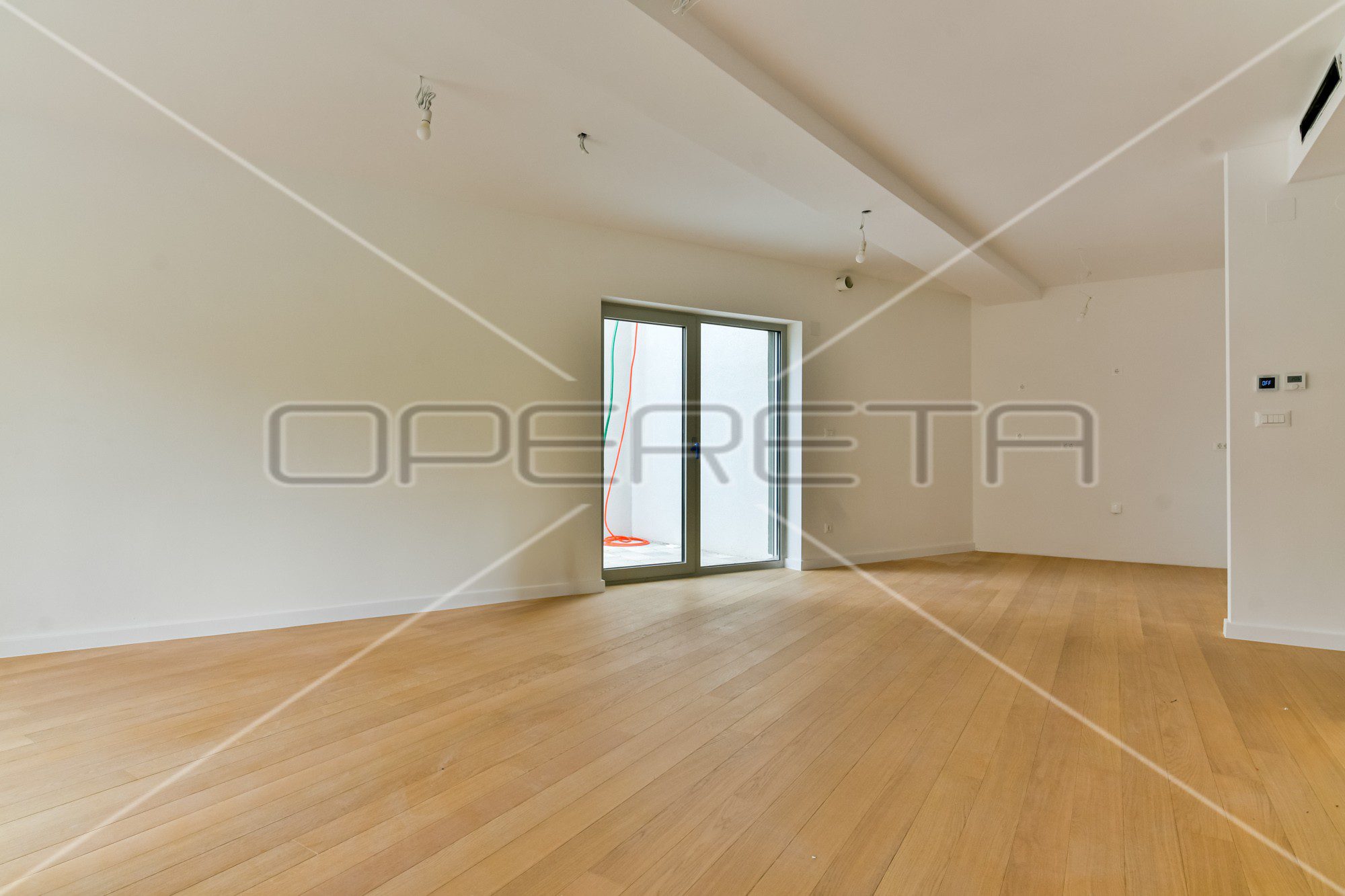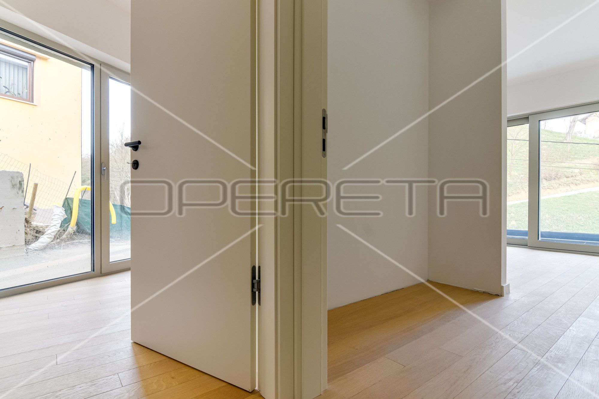 Urbana vila od svega dva stana. Stan se sastoji od ulaznog prostora, open space boravak/kuhinja, dvije kupaone, dvije spavaće sobe, terasa i vrt. Stanu također pripada garaža i vanjsko parking mjesto.