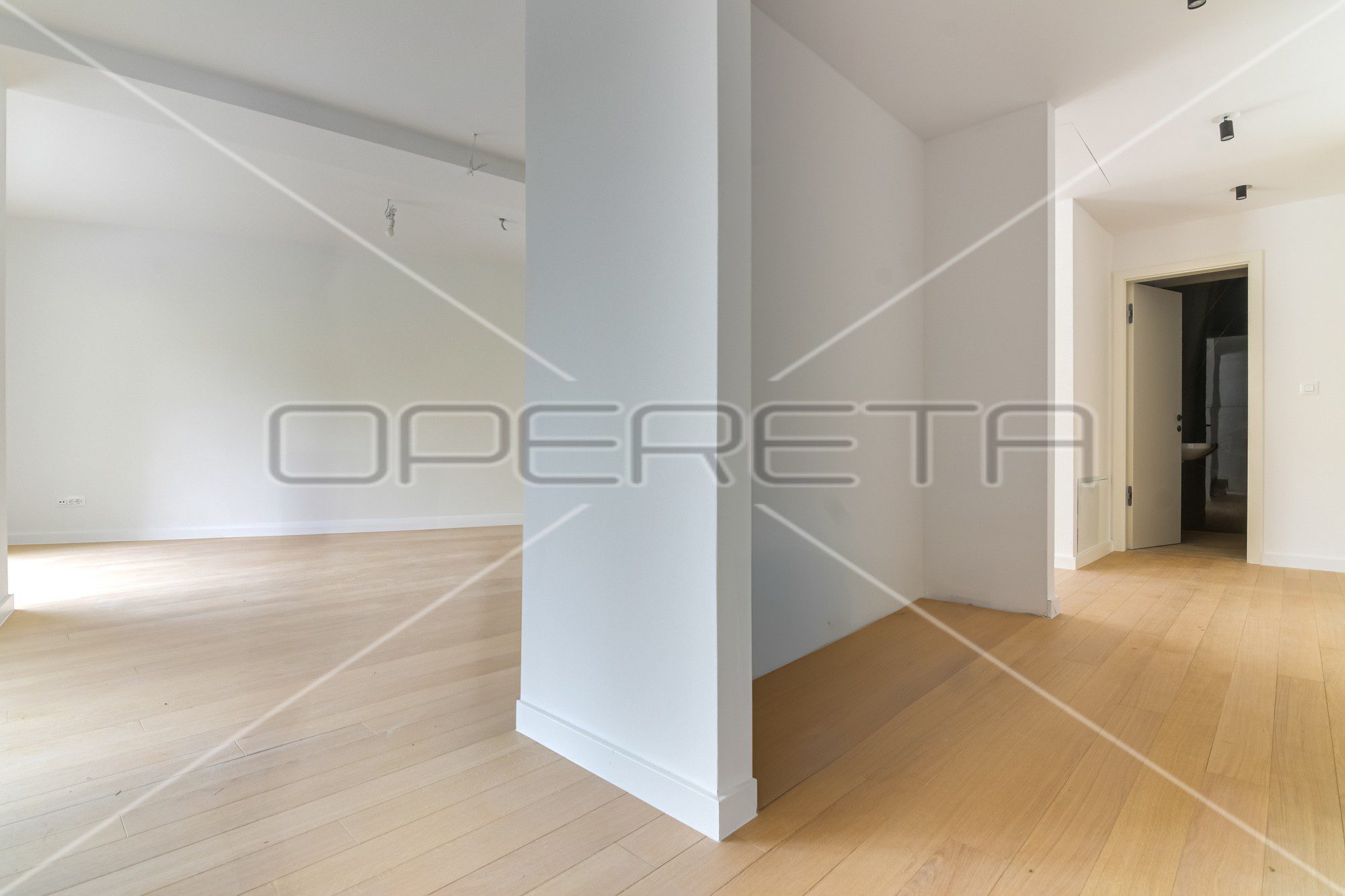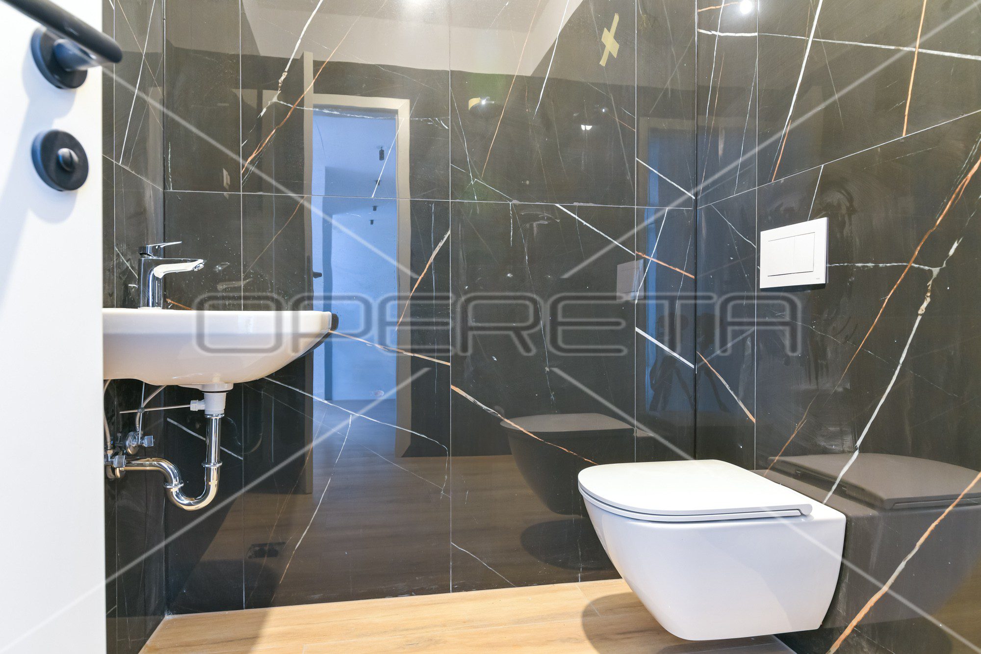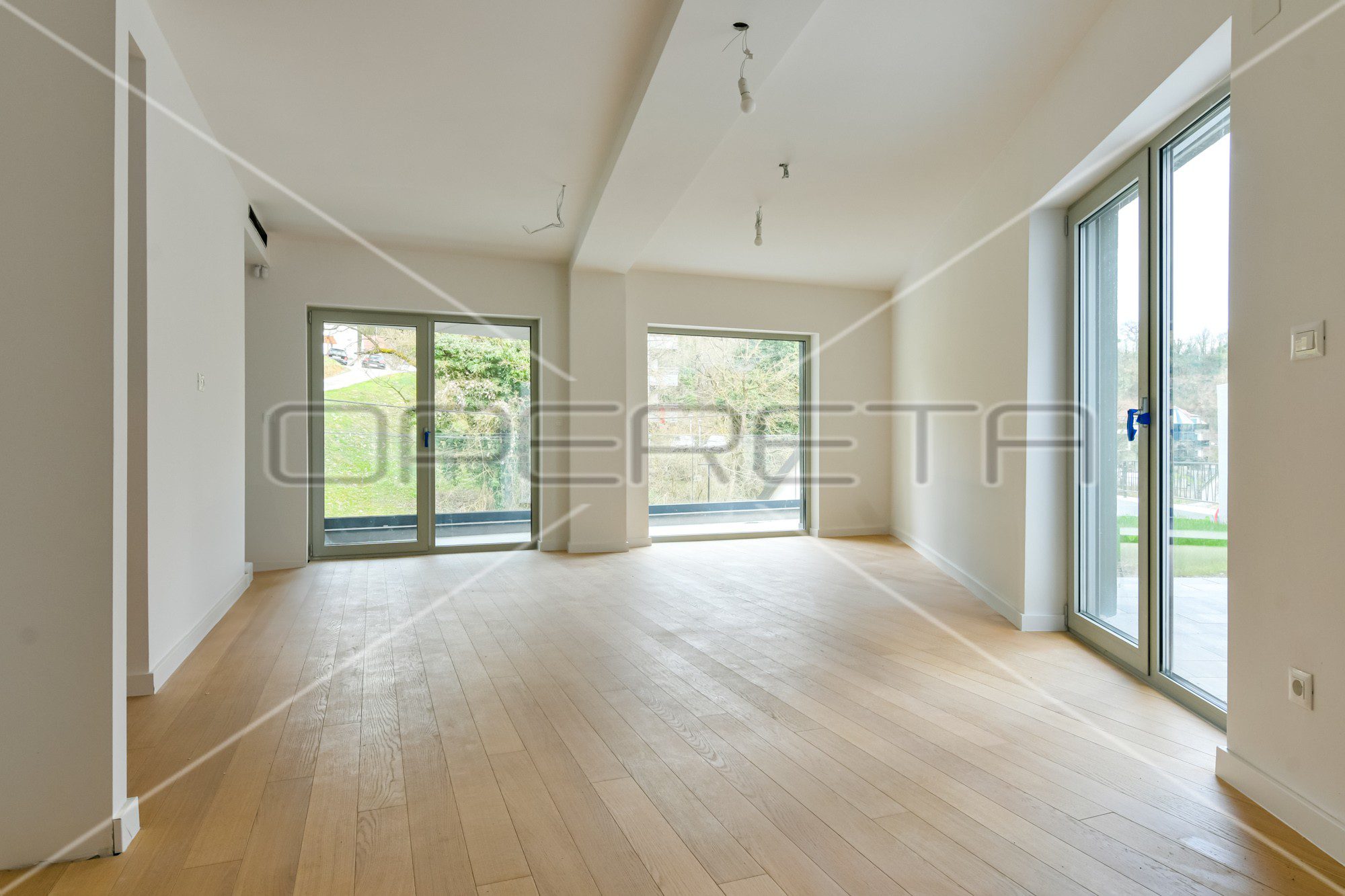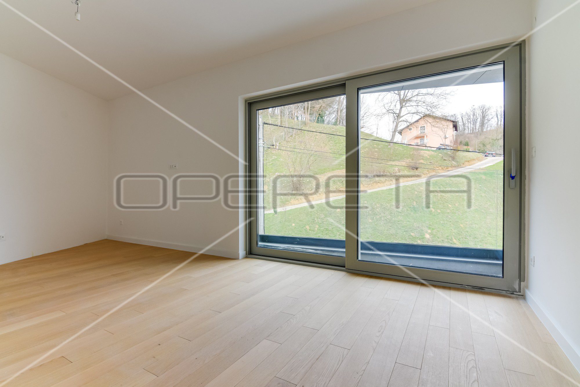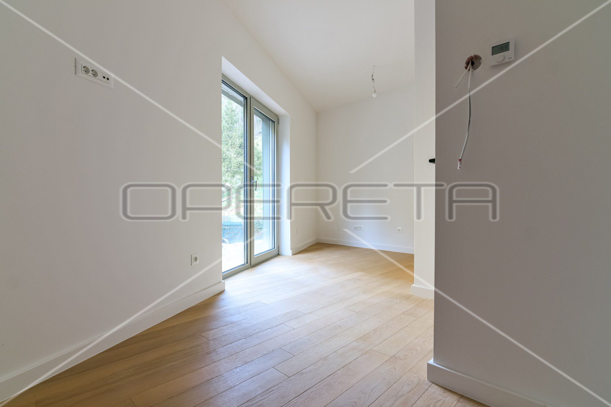 Urbana vila od svega dva stana. Stan se sastoji od ulaznog prostora, open space boravak/kuhinja, dvije kupaone, dvije spavaće sobe, terasa i vrt. Stanu također pripada garaža i vanjsko parking mjesto.