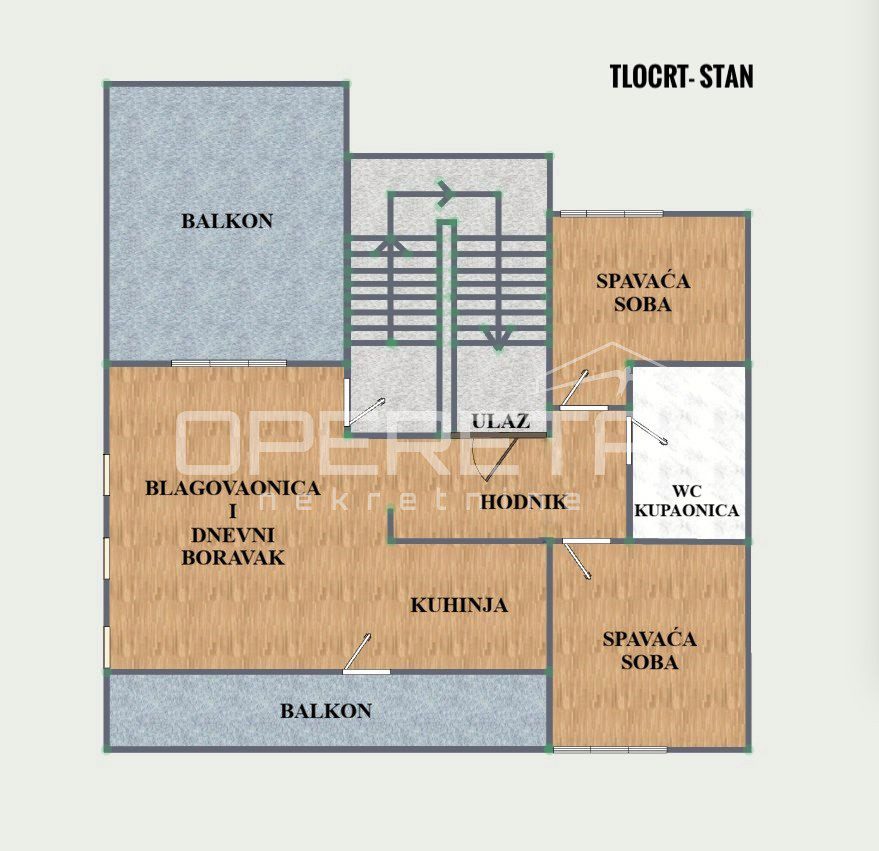 PRODAJA, PENTHOUSE, SESVETE, 100m2, NOVOGRADNJA, 3-soban, ul. Vladimira Vidrića. Stan ima 73m2 zatvorenog prostora koji se sastoji od hodnika, dnevnog boravka sa kuhinjom I blagovaonicom koji zajedno čine veliki open space, dvije spavaće sobe, kupaonice s WC-om. U ukupnu kvadraturu stana su po koeficijentima obračunati 2 terase na razini stana, krovna terasa te 2 vanjska parkirna mjesta. Na obje terase je u zidovima ispod fasade napravljena priprema za pergolu, a na krovnoj terasi je napravljena priprema za roštilj i provedena je voda. Nekretnina je potpuno nova te kupci postaju prvi vlasnici. Oprema: PVC vanjska stolarija s električno podizačima i antracit roletama, troslojno staklo, plinsko etažno podno grijanje, prvoklasna keramika i troslojni hrastov parket, klima uređaj, Home sustav pametnog stana, vanjski i nosivi zidovi armirano – betonski 18-25 cm, unutarnje stubište je armirano-betonsko, hidrofobna žbuka, krovište s HI i TI izolacijom…. Stan glasi na firmu pa Kupac ne plaća 3% porez na promet nekretninama. Zgrada je etažirana sa ishođenom uporabnom dozvolom te odmah useljiva. Svi sadržaji potrebni za ugodan urbani život su u blizini: trgovina, supermarket, škola, park, ljekarna, vrtić, autobus, restorani, kafići, igrališta…Idealna nekretnina za one koji traže spoj komfora, kvalitete i privatnosti u modernom urbanom okruženju sa puno otvorenog prostora na jako mirnoj lokaciji. PREPORUČUJEMO!