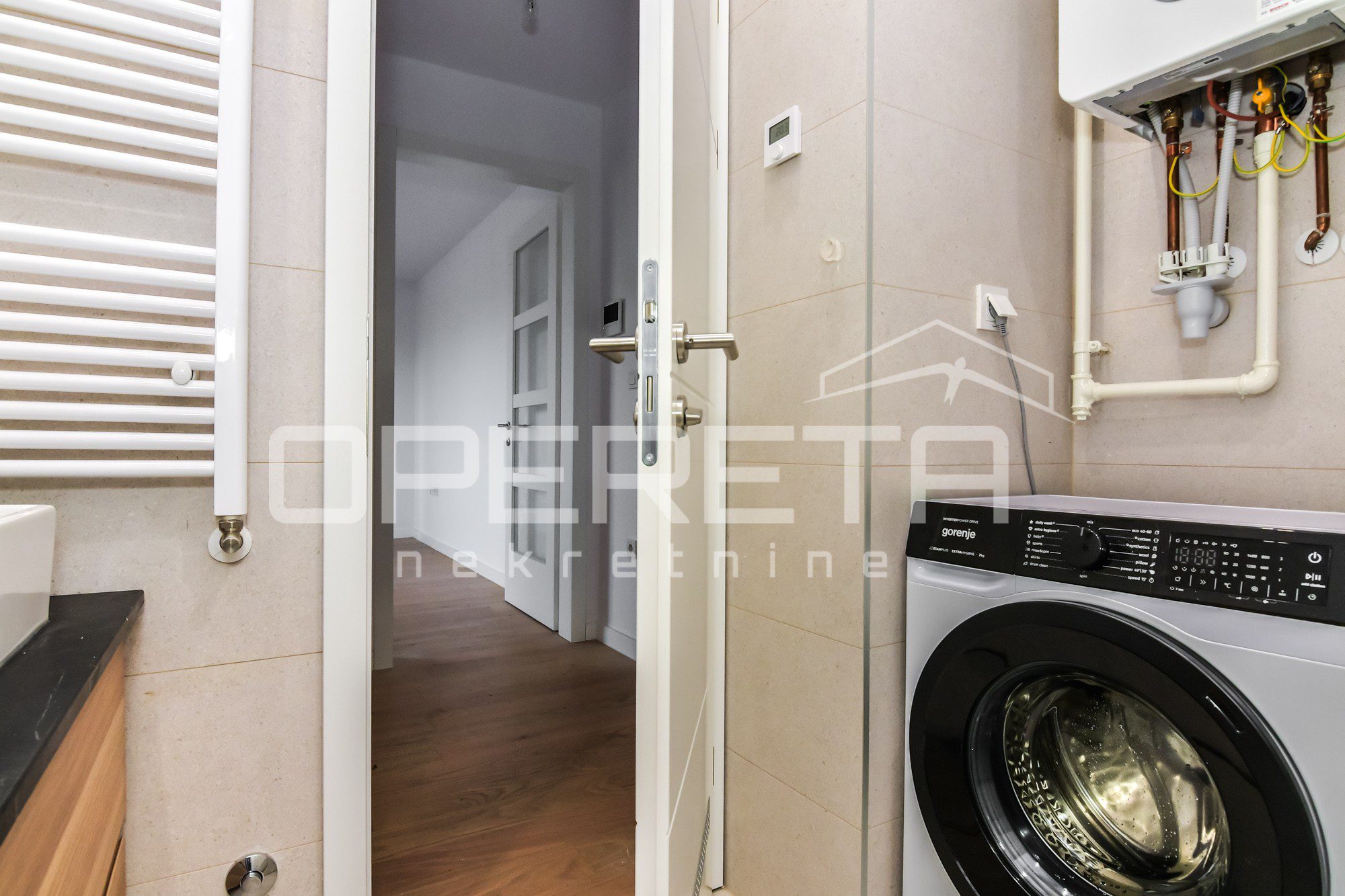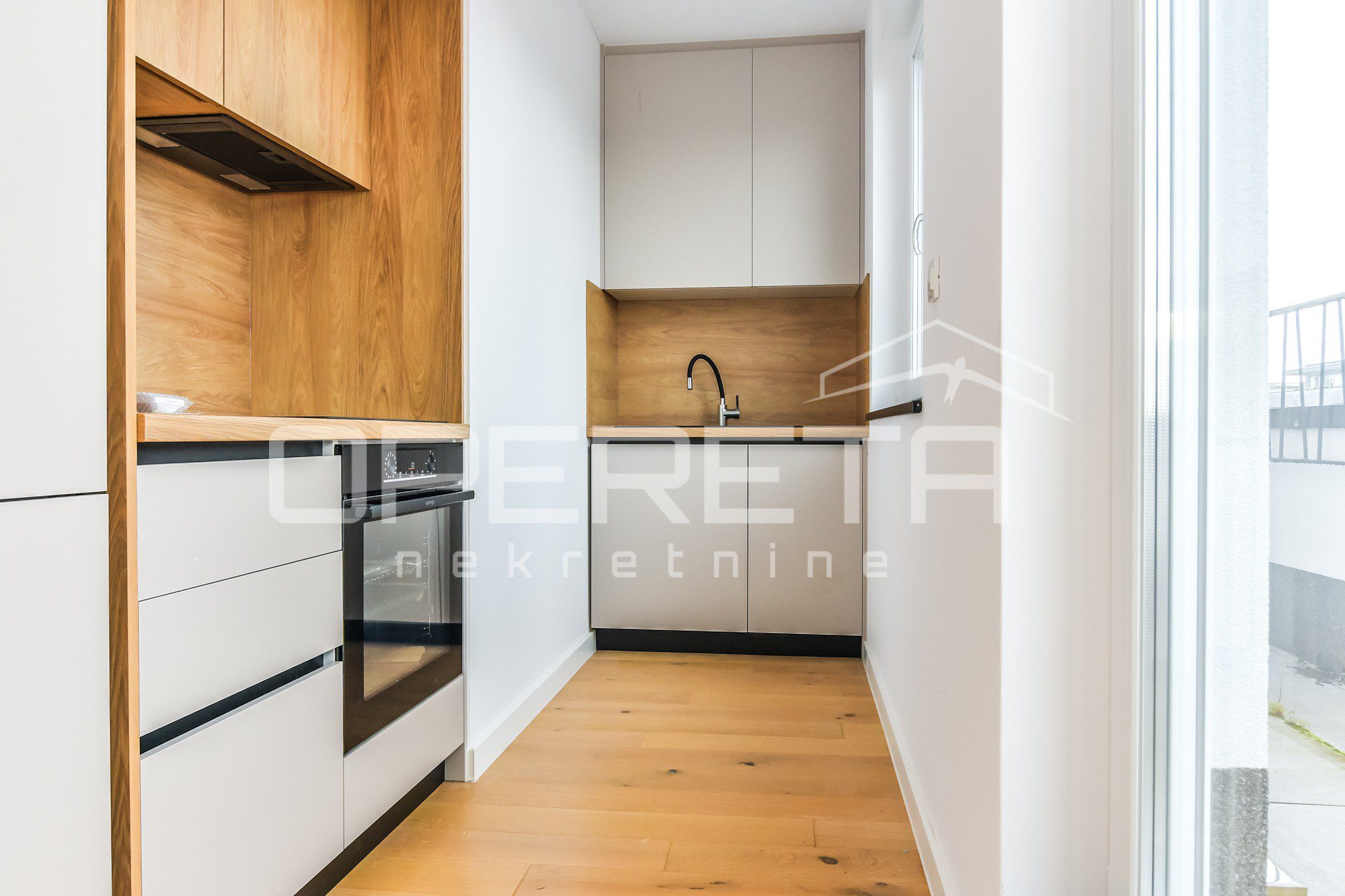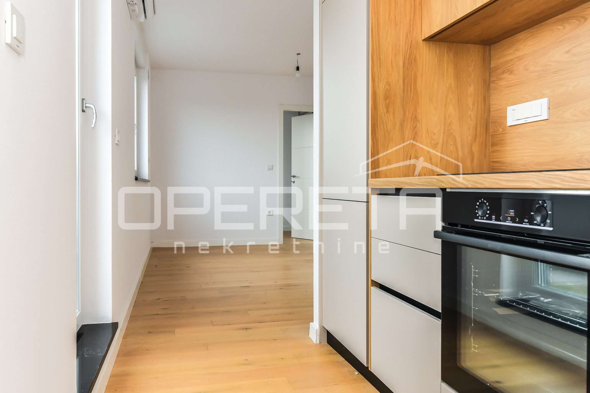 Stan je polu-namješten, opremljen s kuhinjom po mjeri i ugradbenim ormarima.