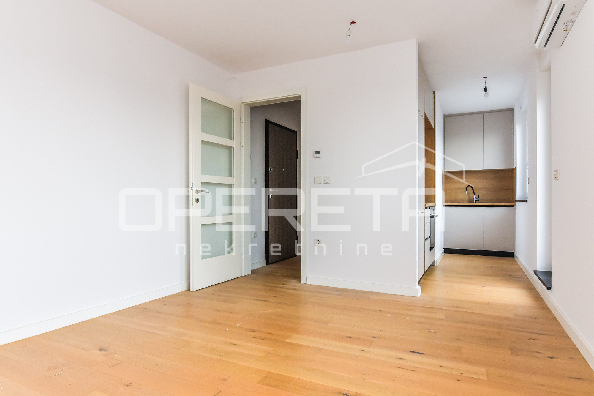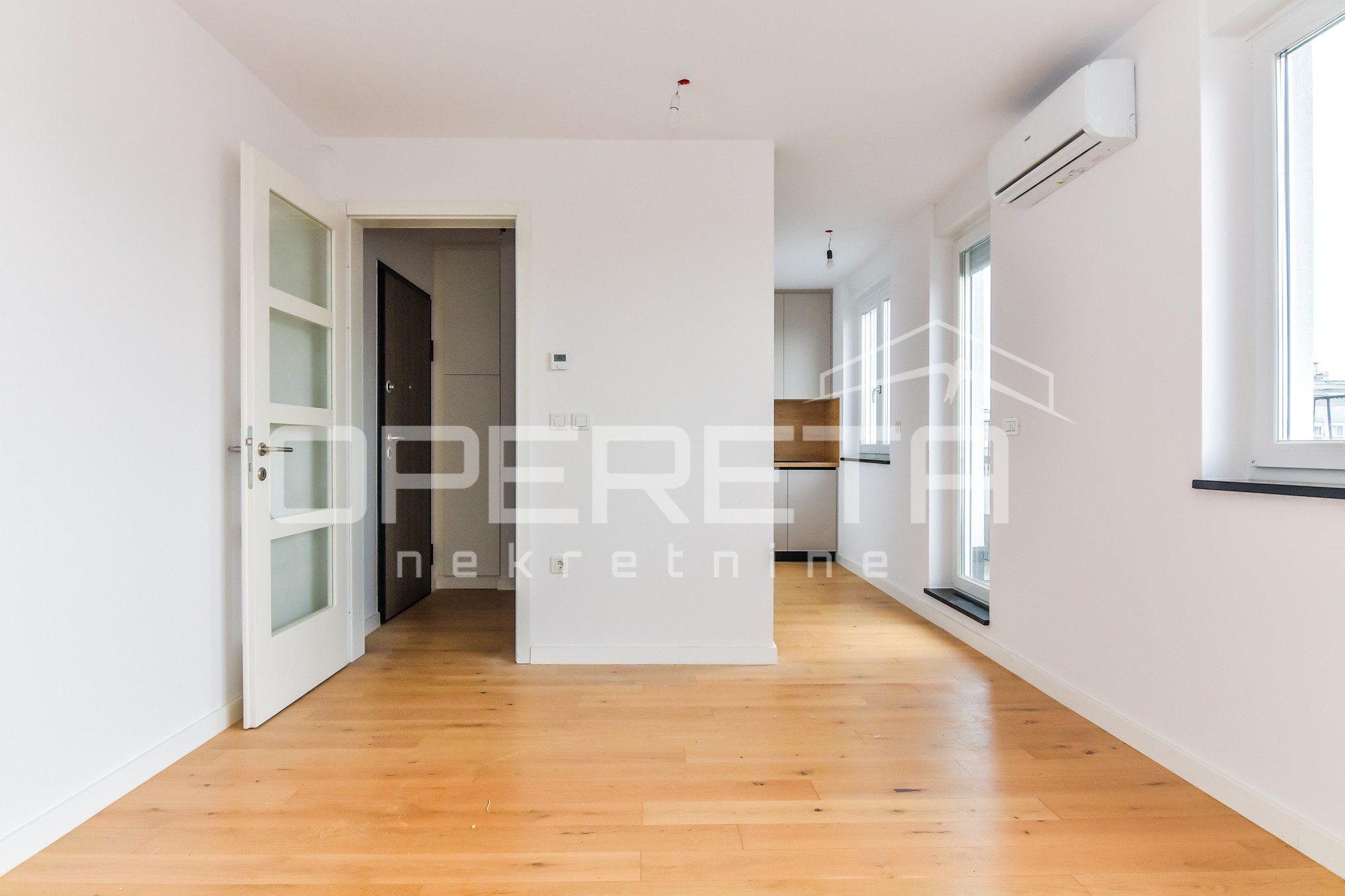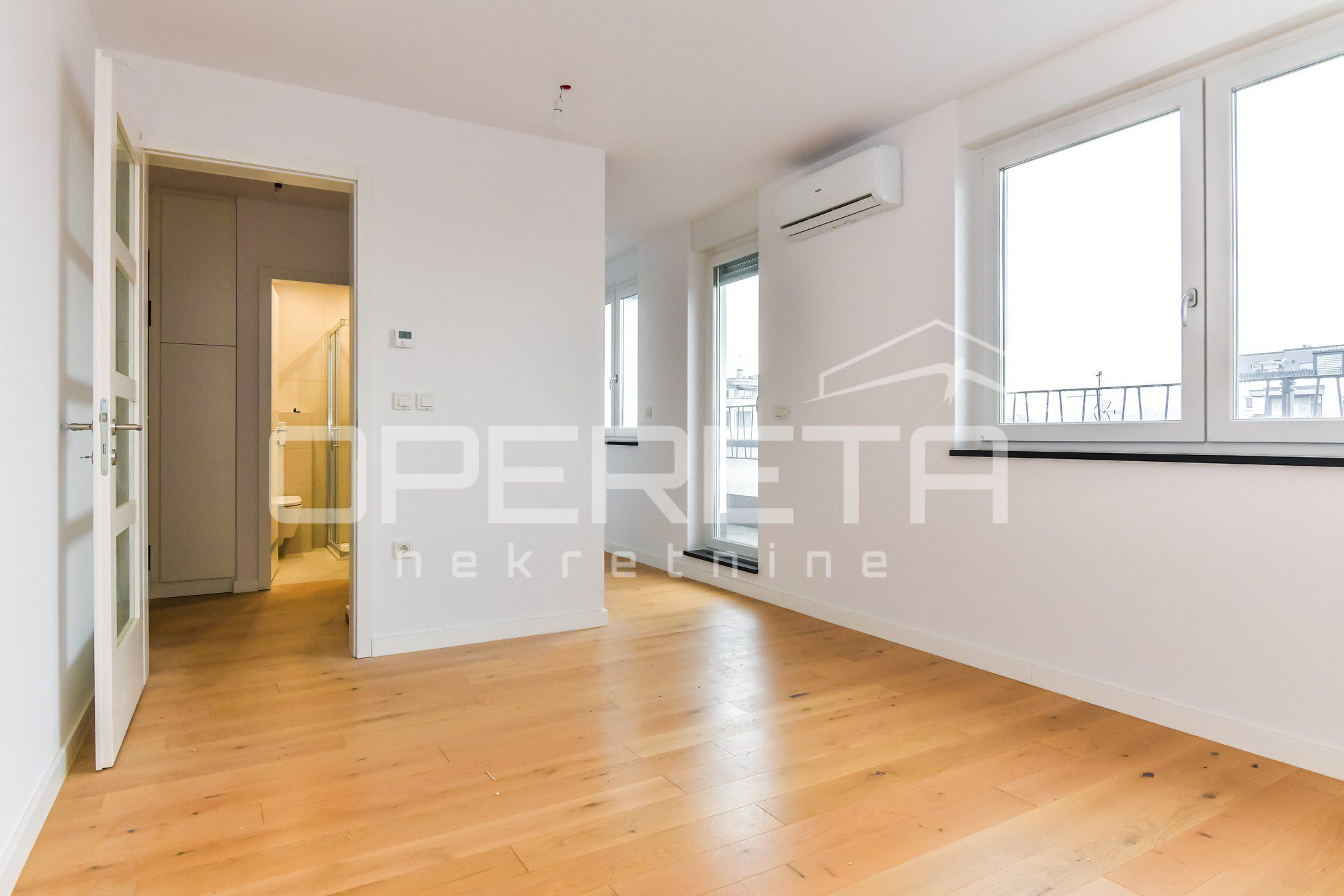 Stan je polu-namješten, opremljen s kuhinjom po mjeri i ugradbenim ormarima.