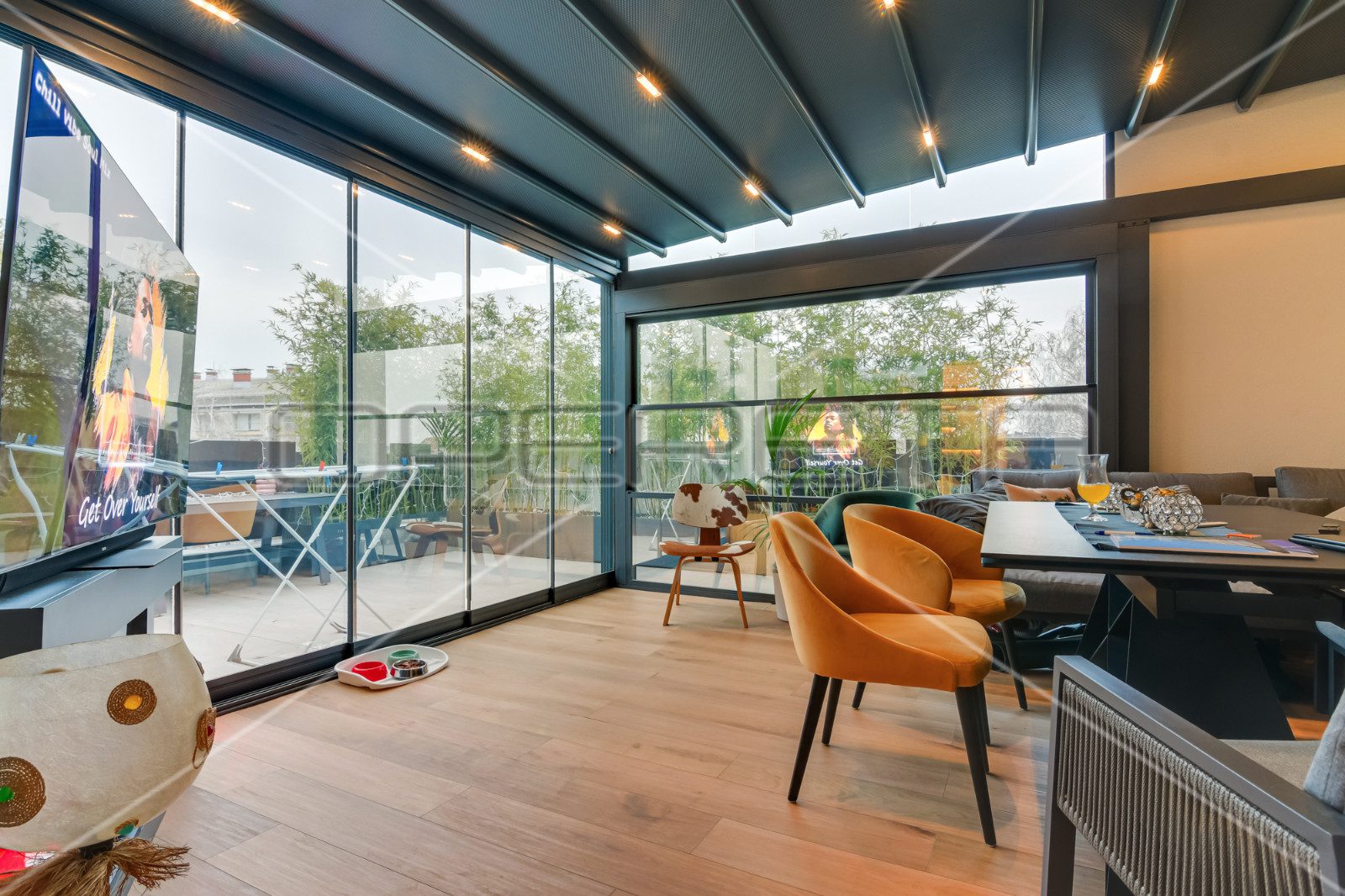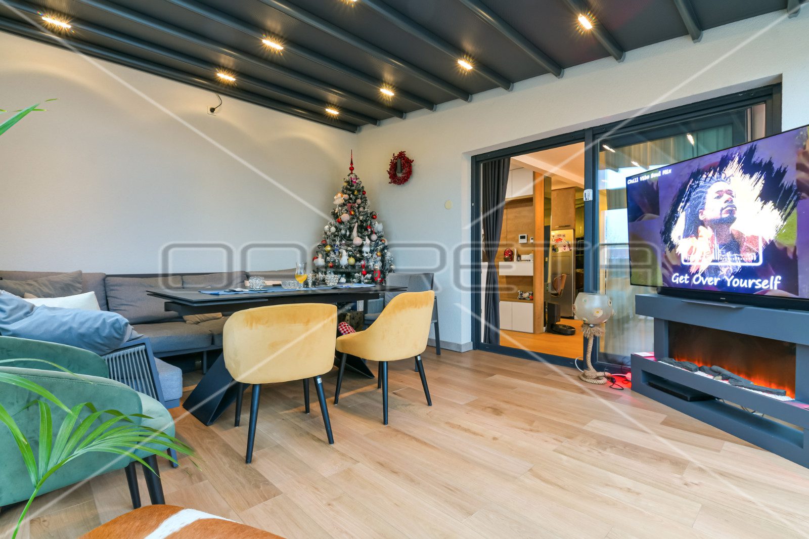 PRODAJA, STAN, ZAGREB. ŠPANSKO, Divkovićeva 3,5 soban. Moderno uređeni penthouse u zgradi iz 2021. na odličnoj lokaciji u blizini svih potrebnih sadržaja. Sastoji se od ulaznog prostora, kuhinje sa blagovaonicom, 2 spavaće sobe, kupaonice, spremišta i 2 vanjska parkirna mjesta. Od terase ja napravljen zimski vrt koji ima funkciju dnevnog boravka te ga je po potrebi moguće skroz otvoriti što daje dodatnu komociju po ljetnim mjesecima pošto se sa istog pruža lijepi pogled.