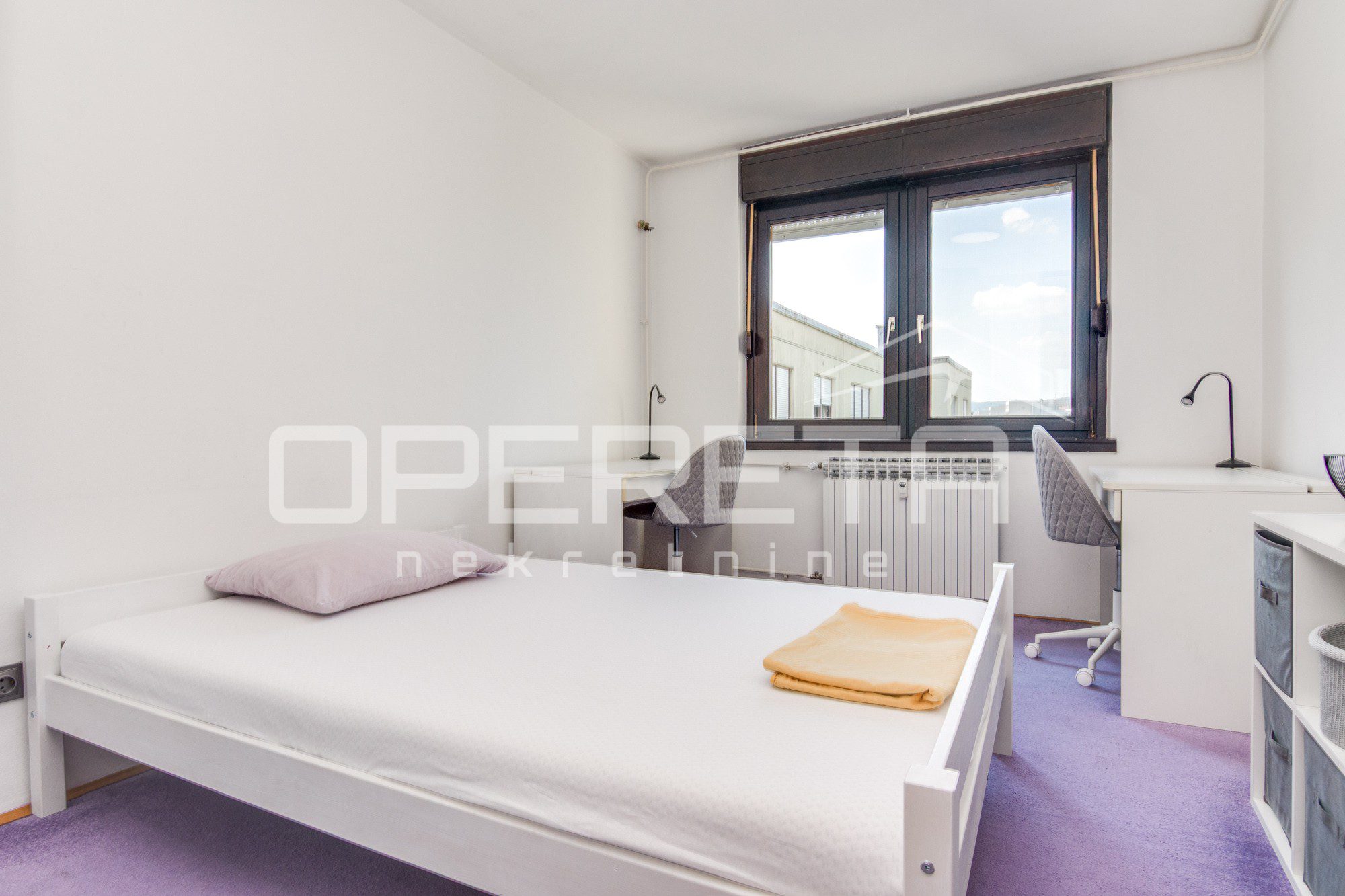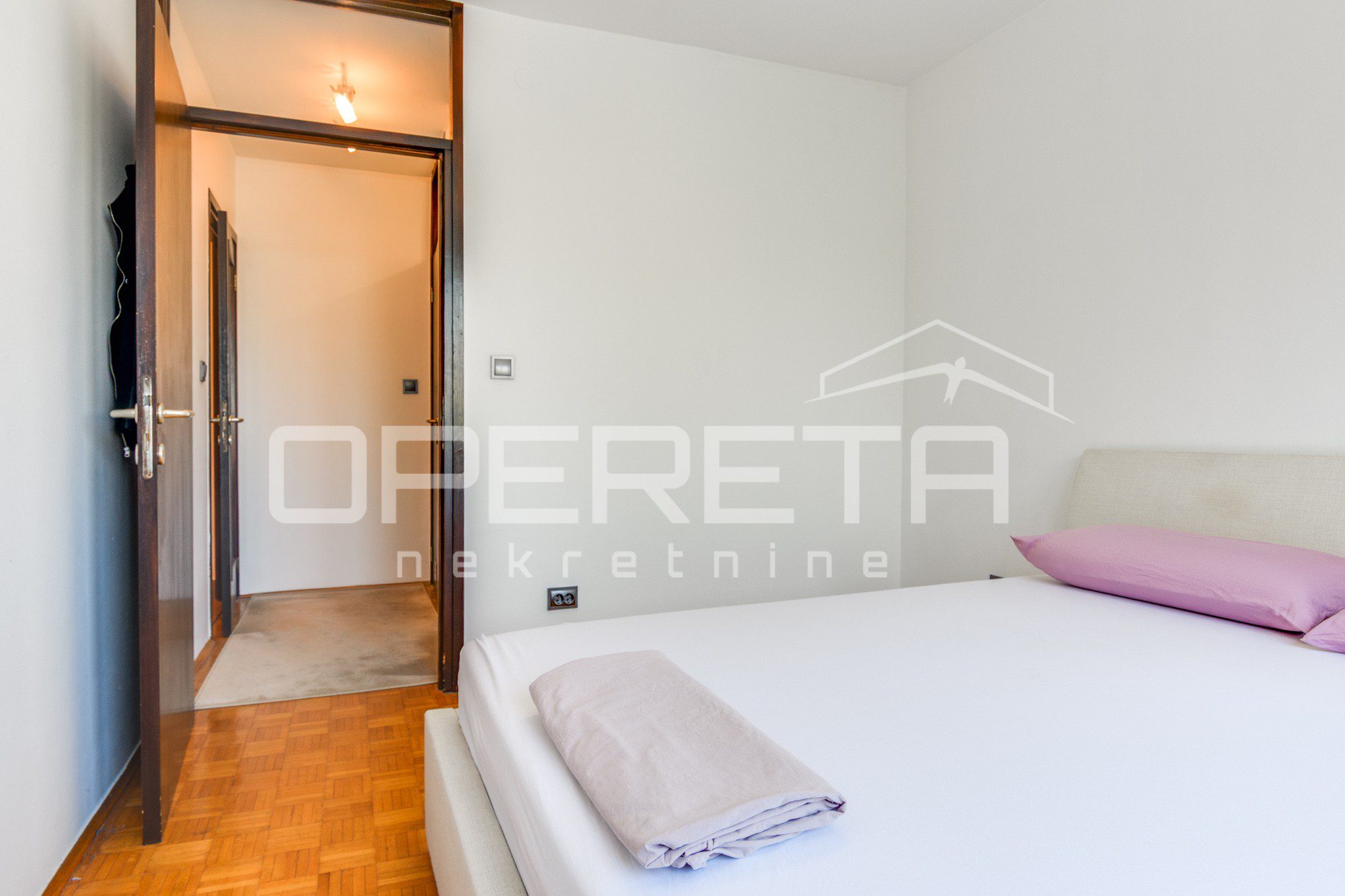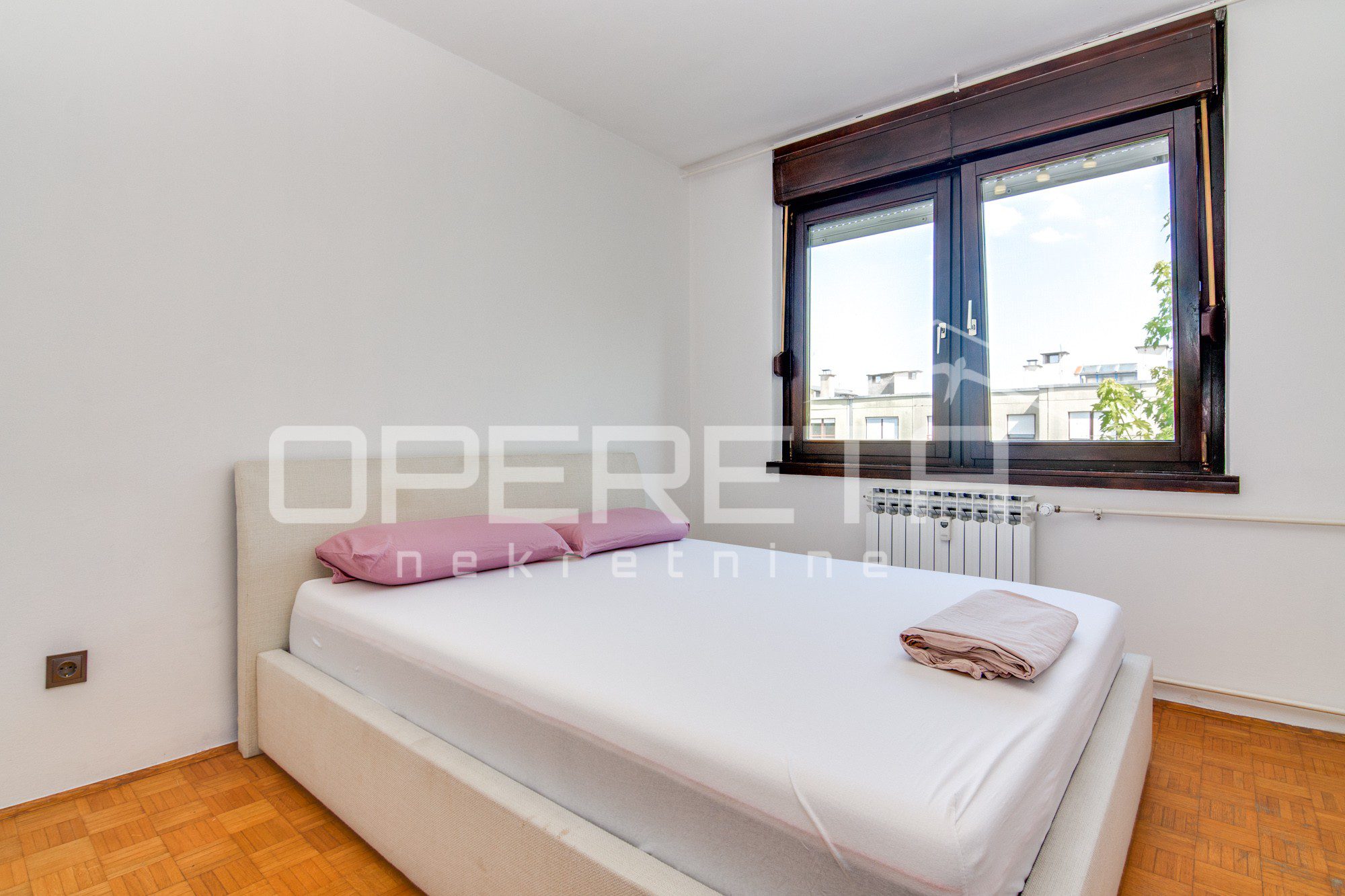 U vrlo dobrom stanju prostrani 4-soban stan koji se sastoji od ulaznog hodnika gdje je smještena blagovaonica, kuhinje, dnevnog boravka s izlazom na lođu, 3 spavaće sobe, kupaonice s WC-om, odvojenog WC-a te ostave.