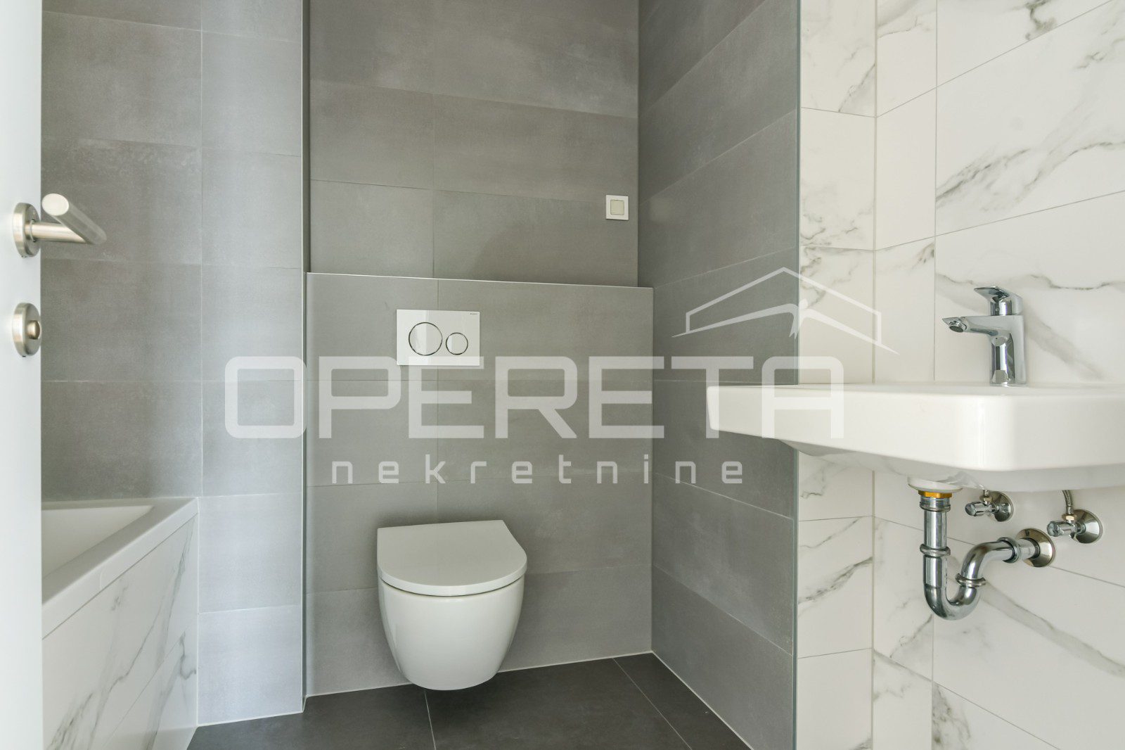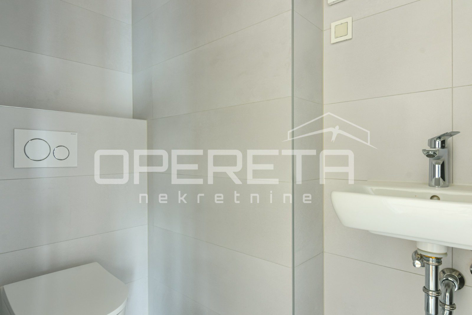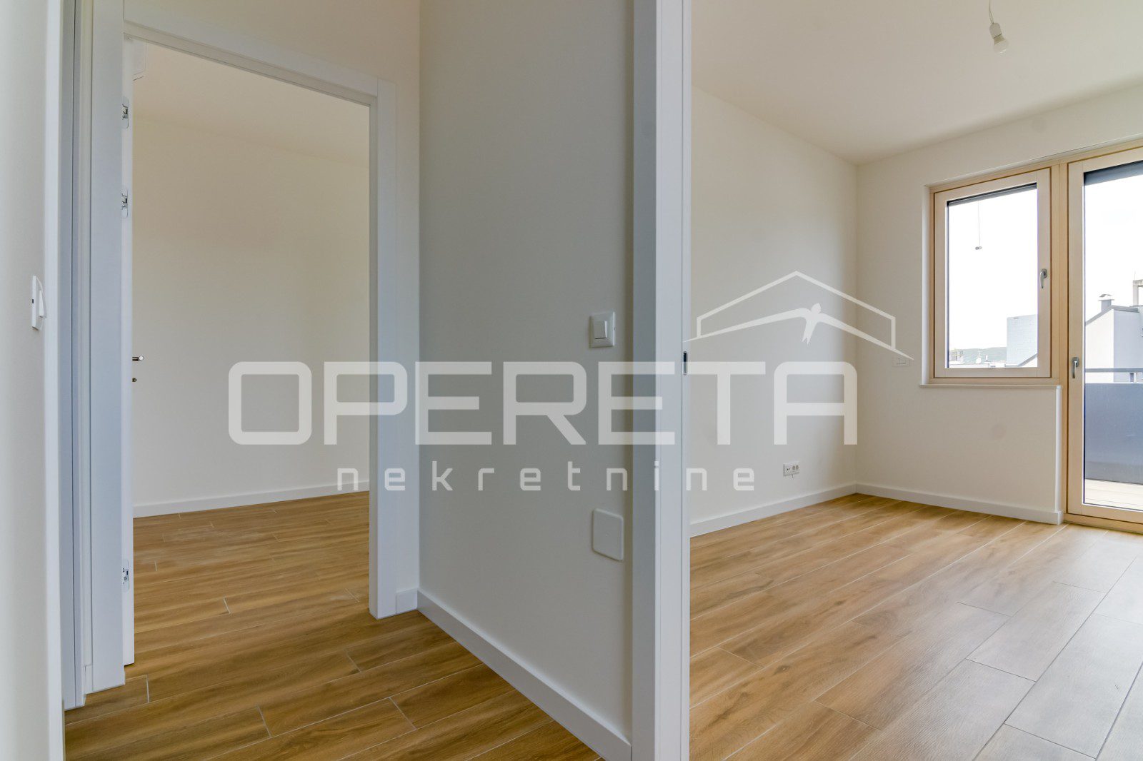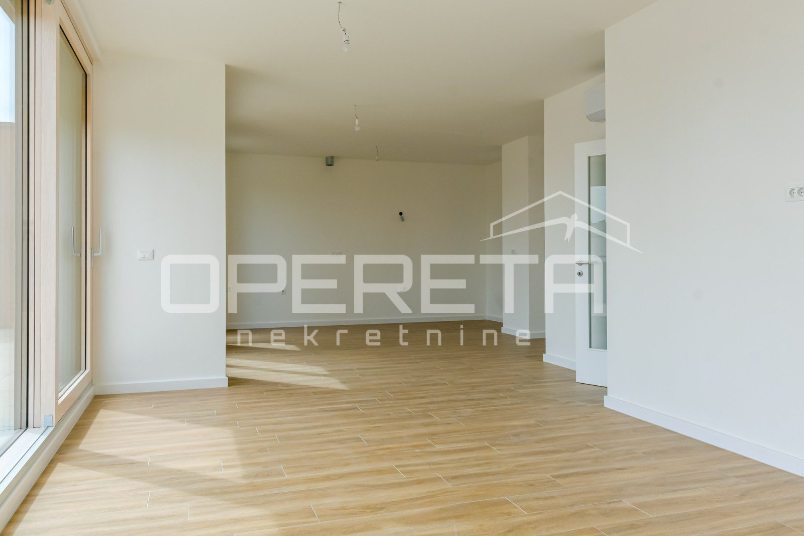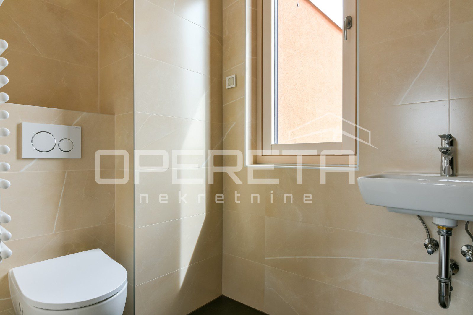 Peterosoban penthouse na 5. katu (jedini stan na cijeloj etaži) s liftom koji se sastoji od tri hodnika, 1 open space prostor s kompletnom kuhinjom + 4 spavaće sobe ,tri kupaonice ukupne podne površine 131,29 m² + natkrivena terasa površine cca 20m2 + spremište u razizemlju+ zatvorena garaža na -1, parkirno mjesto u garaži i vanjsko parkirno mjesto ( sveukupno pripadaju 3 parkinga).