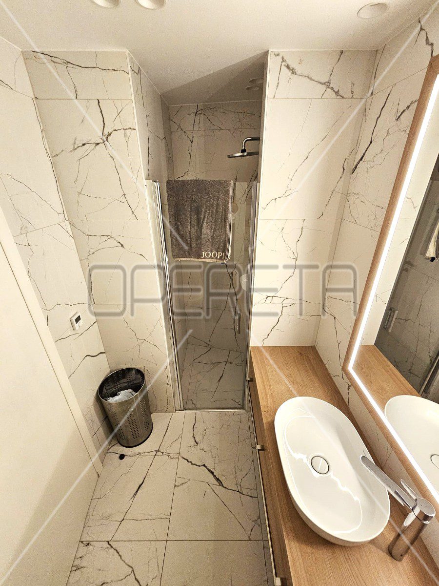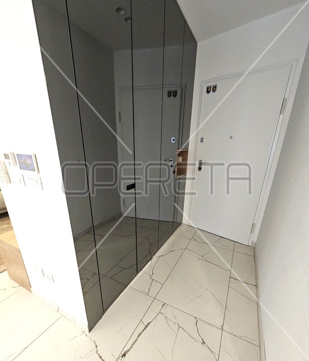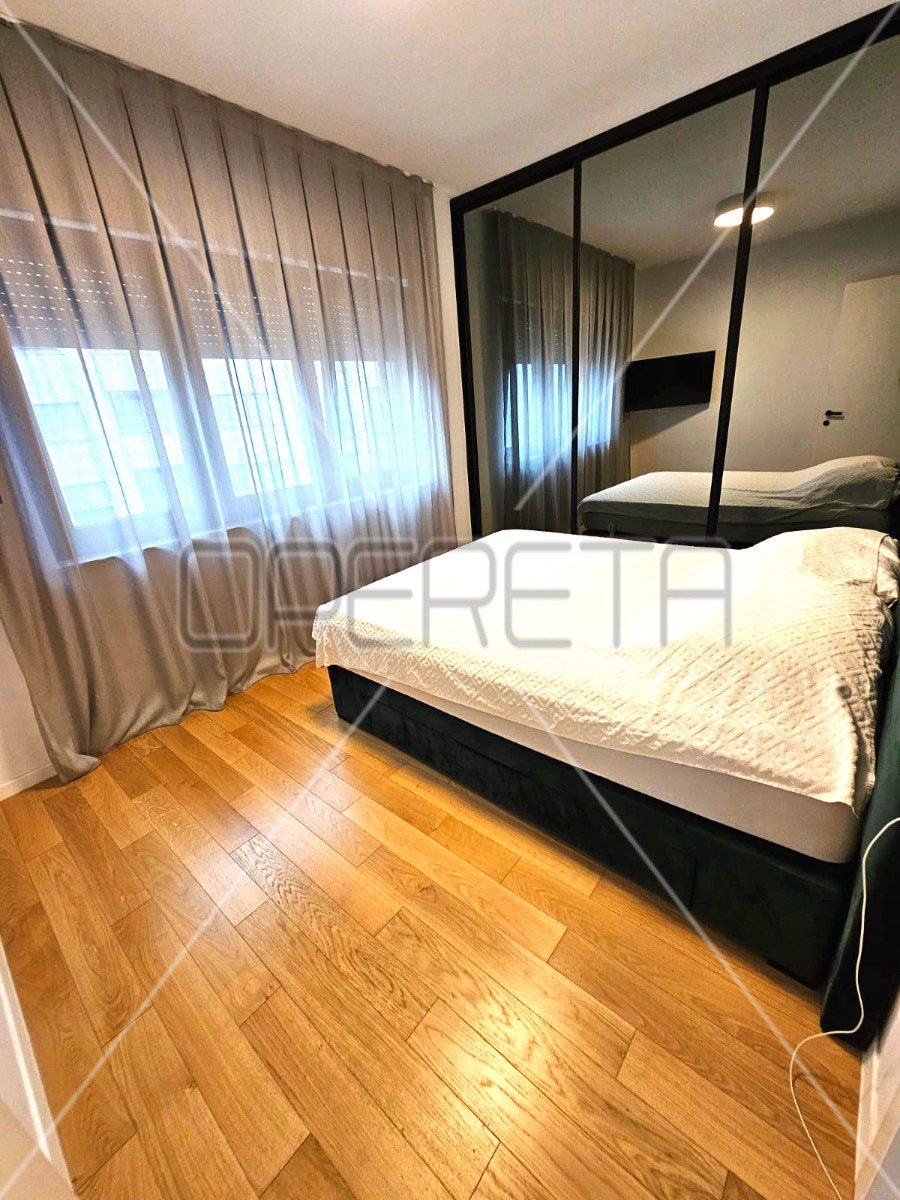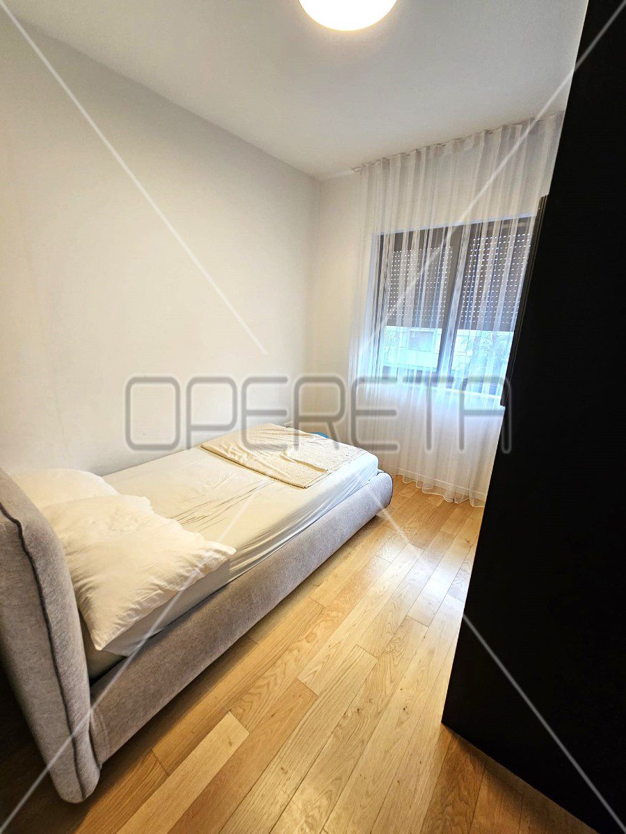 Iznajmljuje se 3soban stan na Trešnjevci, na 2. katu zgrade s liftom. Zgrada je građena 2020. godine i stanu pripada vanjsko parkirno mjesto. Sastoji se od ulaznog hodnika s ormarima, open space kuhinje s blagovaonicom i dnevnim boravkom, kupaonice, vešeraja, 2 spavaće sobe i lođe. Kompletno je namješten i opremljen. Dostupan od 01.03.2026.