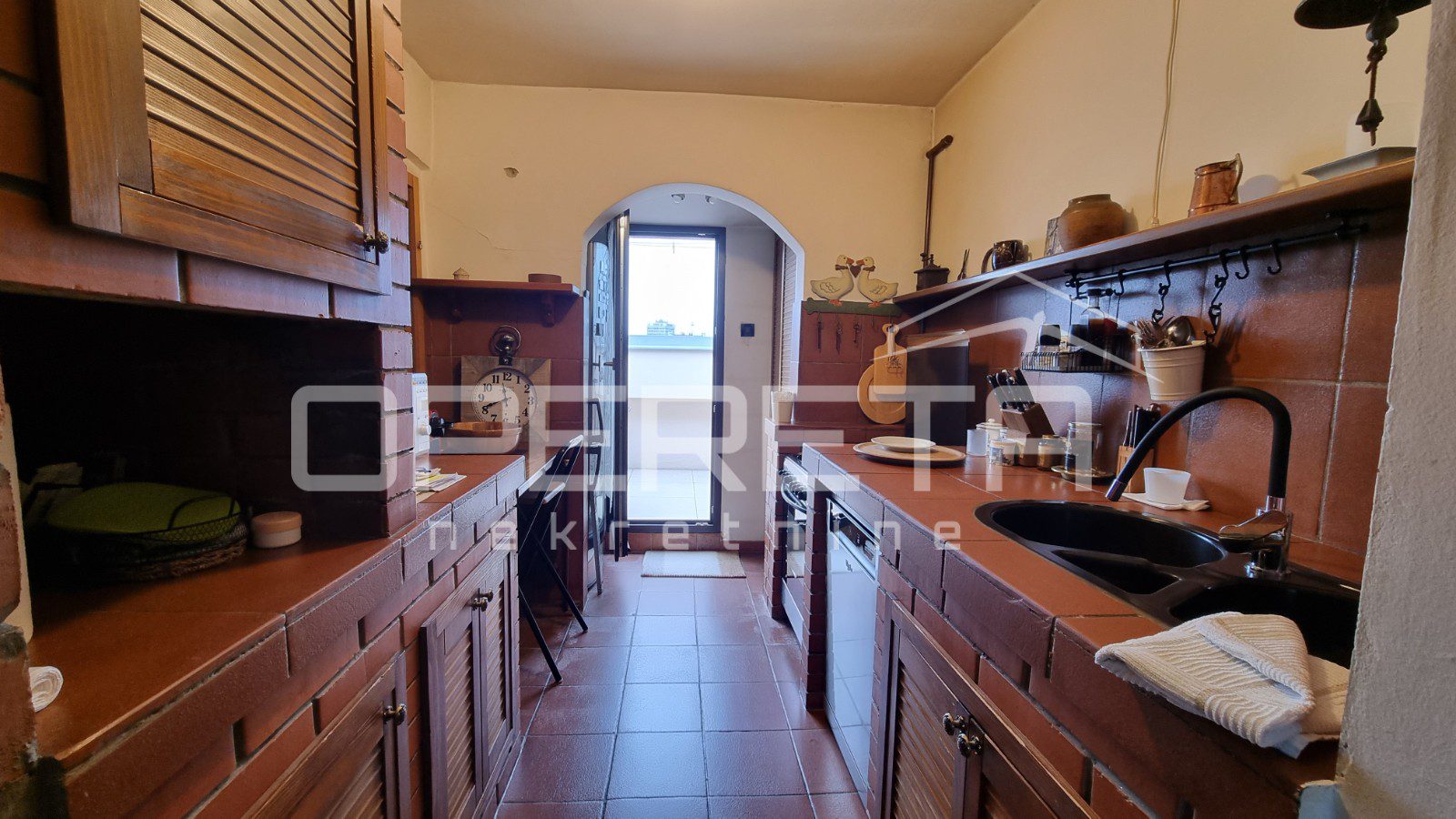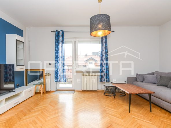 Na atraktivnoj lokaciji na Trešnjevci u Kranjčevićevoj ulici smješten je stan s galerijom. Ukupna površina stana iznosi 123m2. Donja etaža ima 97m2 i sastoji se od ulaznog hodnika, dnevnog boravka s blagovaonom u nastavku koje su smješteni kuhinja i balkon, dvije spavaće sobe, ostava koja služi kao garderoba i kupaonica. Iz dnevnog boravka spiralnim stepenicama penje se na galeriju veličine 26m2. Održavan stan, pogled na Sljeme kao i na južnu sunčanu stranu. Stanu pripada i spremište u zgradi na istoj etaži.