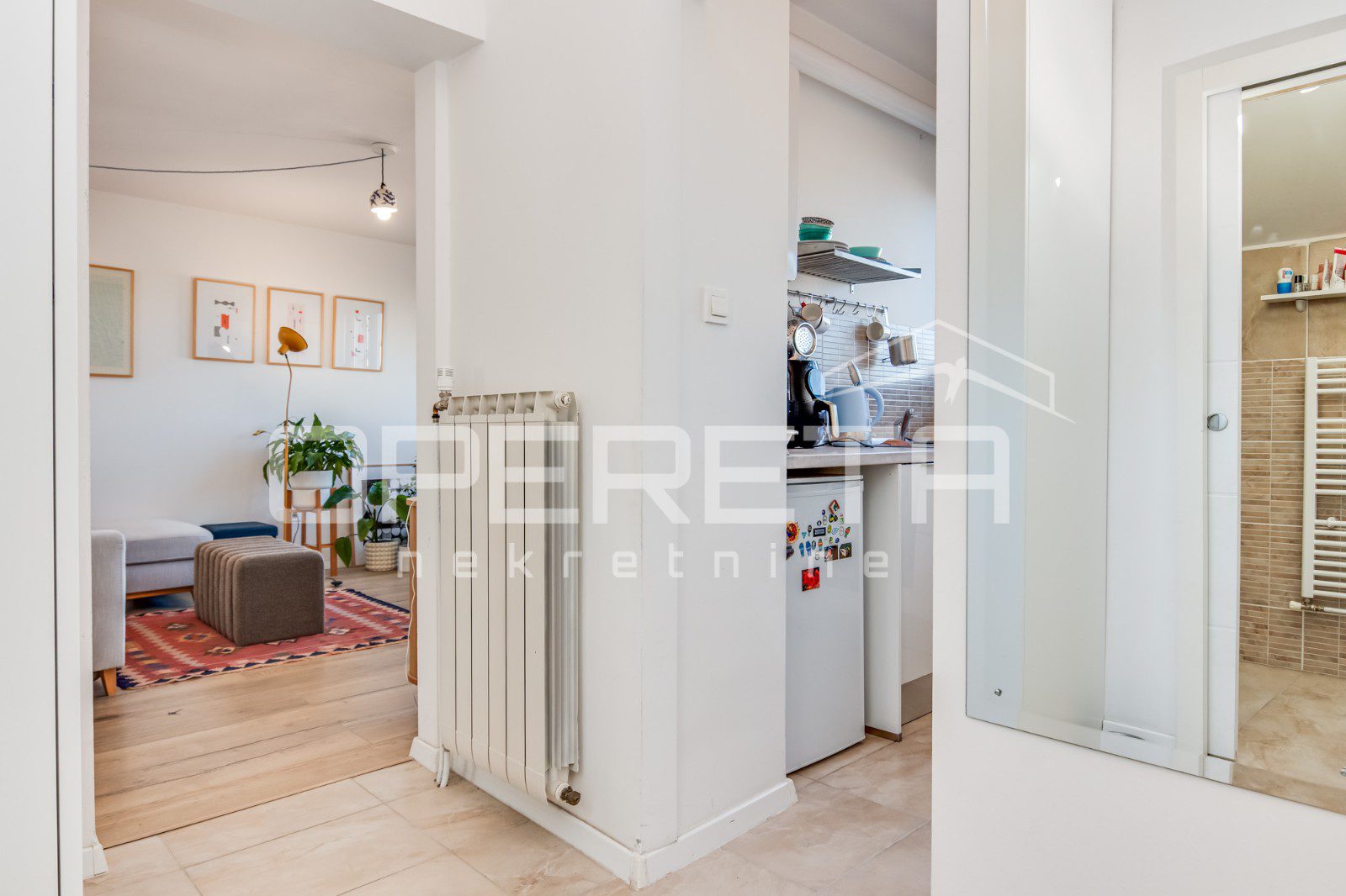 PRODAJA, STAN, ZAGREB, TREŠNJEVKA, 37m2 kao nov, 2-soban, Novotnijeva. Stan se sastoji od ulaznog hodnika, kupaonice, kuhinje, dnevnog boravka sa blagovaonom i izlazom na francuski balkon te spavaće sobe. Podna površina stana je 46m2. U navedenu kvadraturu nije uračunato pripadajuće spremište u podrumu (cca 4 m²) i vanjsko parkirno mjesto pod rampom, daju se Kupcu gratis. Kompletno je adaptiran 2024. godine: ugrađeni novi Velux krovni prozori te postavljen kondenzacijski bojler, što osigurava ugodnu klimu i energetsku učinkovitost. Ranije su obnovljeni svi prozori i vrata, odvodne i dovodne instalacije u kuhinji i kupaonici, oprema, postavljen novi laminat, uređena moderna kuhinja i potpuno renovirana kupaonica, novi kosi krov 2021….Mirna lokacija, ulica i susjedstvo u blizini svih potrebnih sadržaja (trgovina, javnog prijevoza, škola, vrtića i ostalih svakodnevnih usluga). Idealna je prilika za Kupca koji traži slatki topli dom sa pozitivnom energijom. PREPORUČUJEMO!