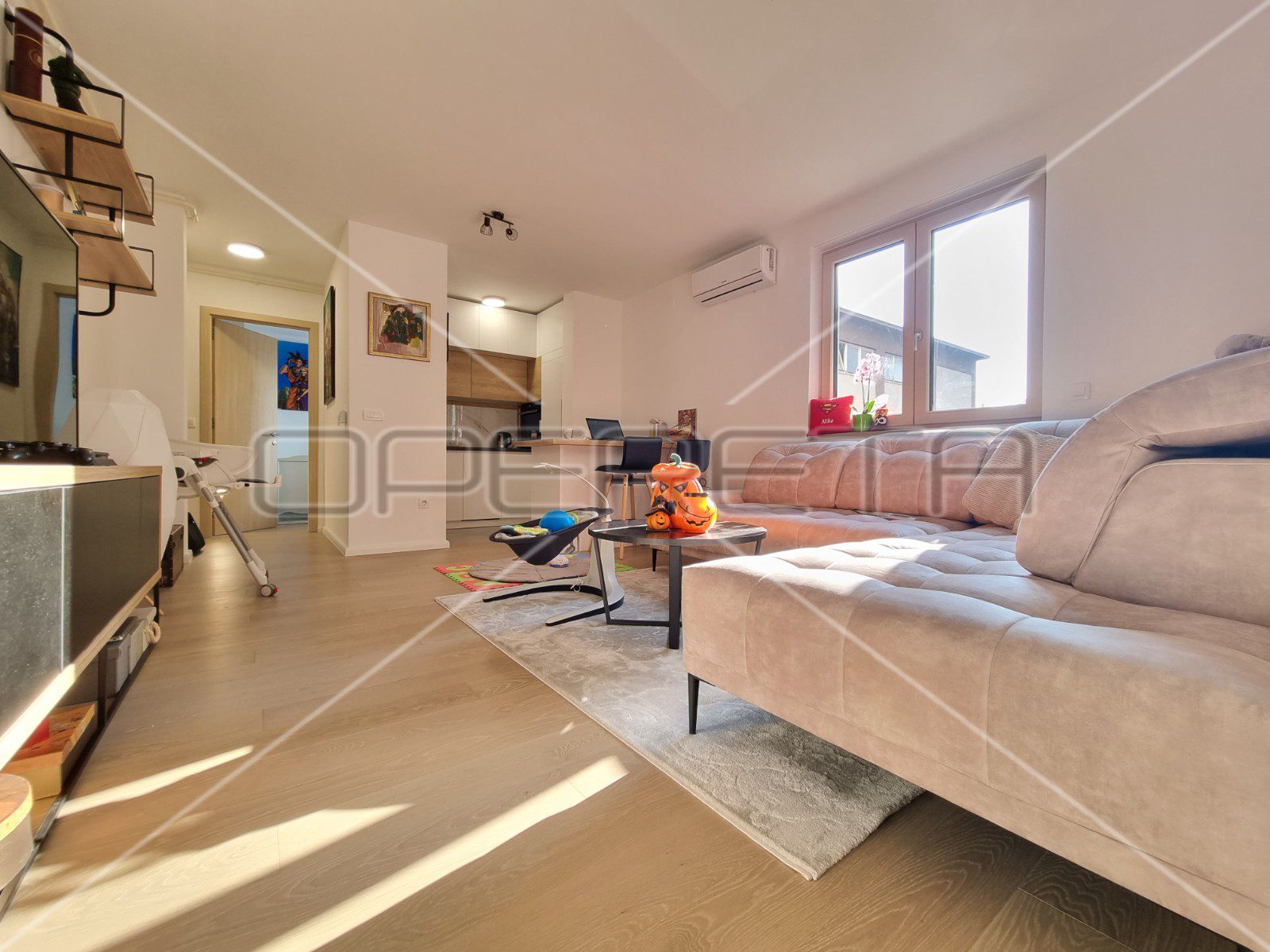 PRODAJA STANA, TREŠNJEVKA, Ulica Andrije Žaje, 52,82 m2, 3-soban stan u novogradnji koji se sastoji od ulaznog prostora, dnevnog boravka u komunikaciji sa kuhinjom, veće spavaće sobe, manje dječje/radne sobe, te kupaonice sa wc-om. Stan je jednostrane, južne orijentacije. u cijeni je i garažno parkirno mjesto u vlasništvu (14m2). Stan se prodaje kompletno namješten i opremljen. Odlična mikrolokacija, nova zgrada, odvojena sva brojila, male režije. Preporuka!