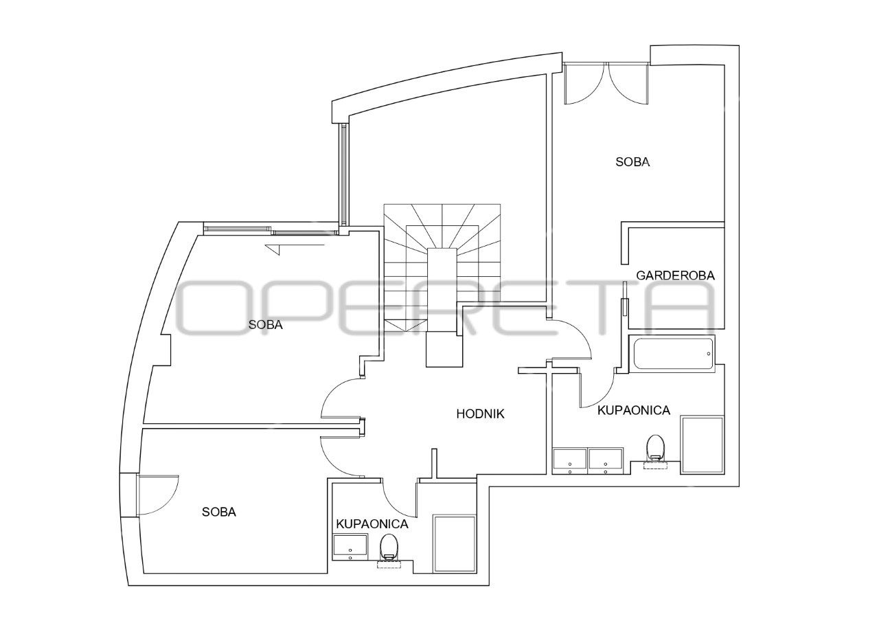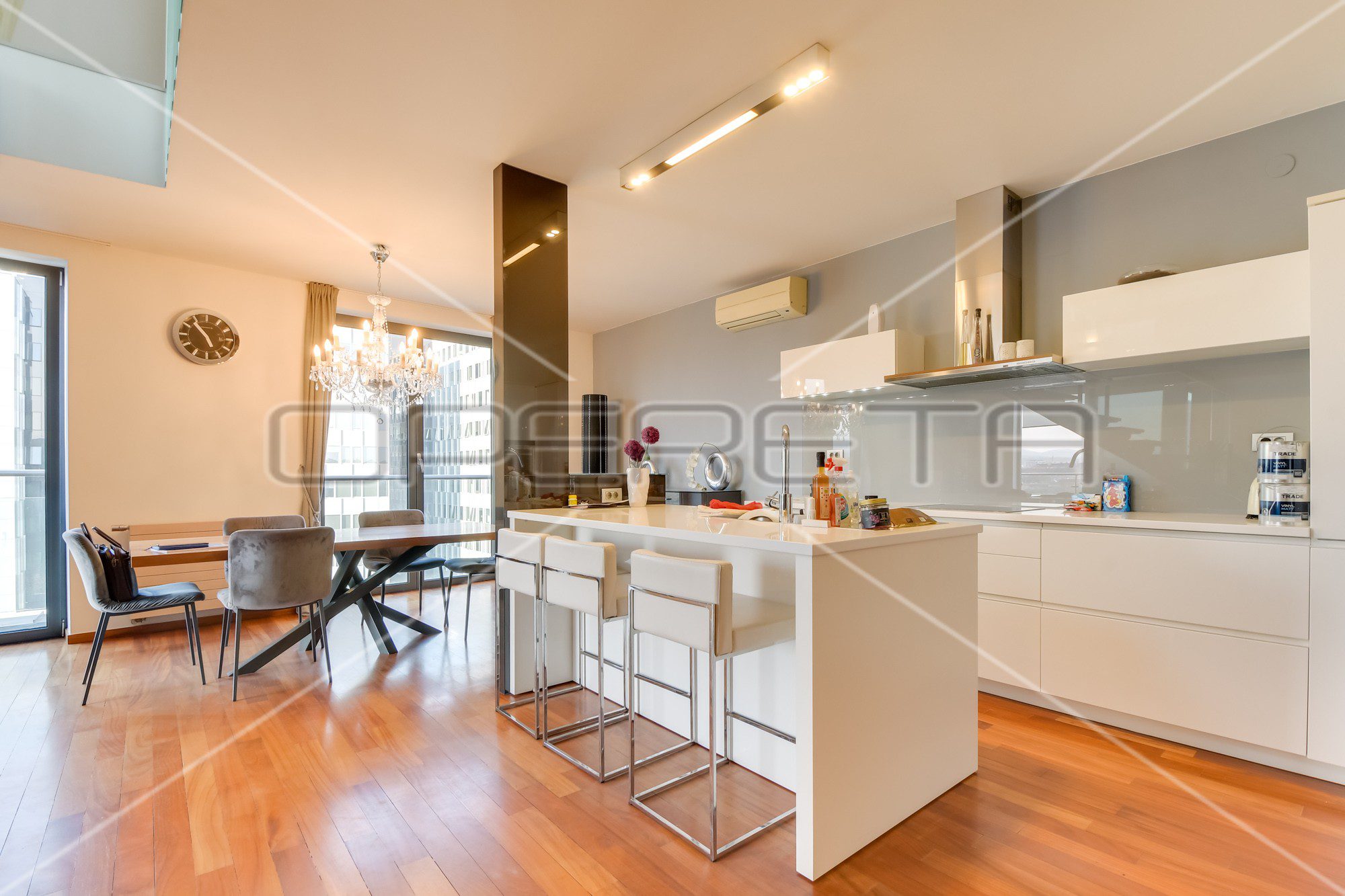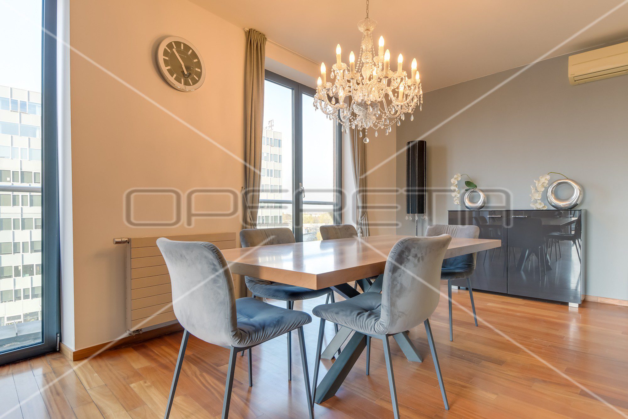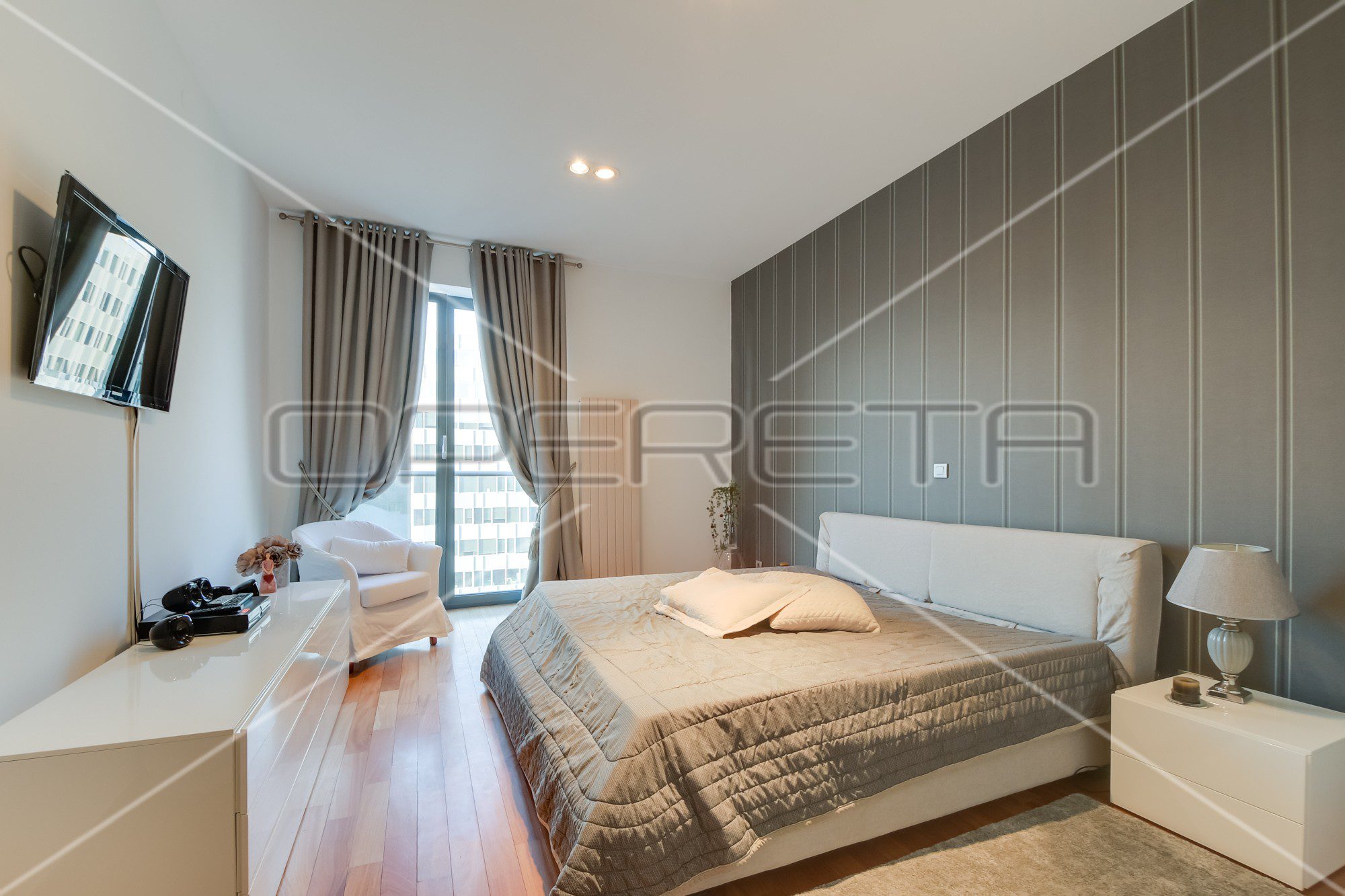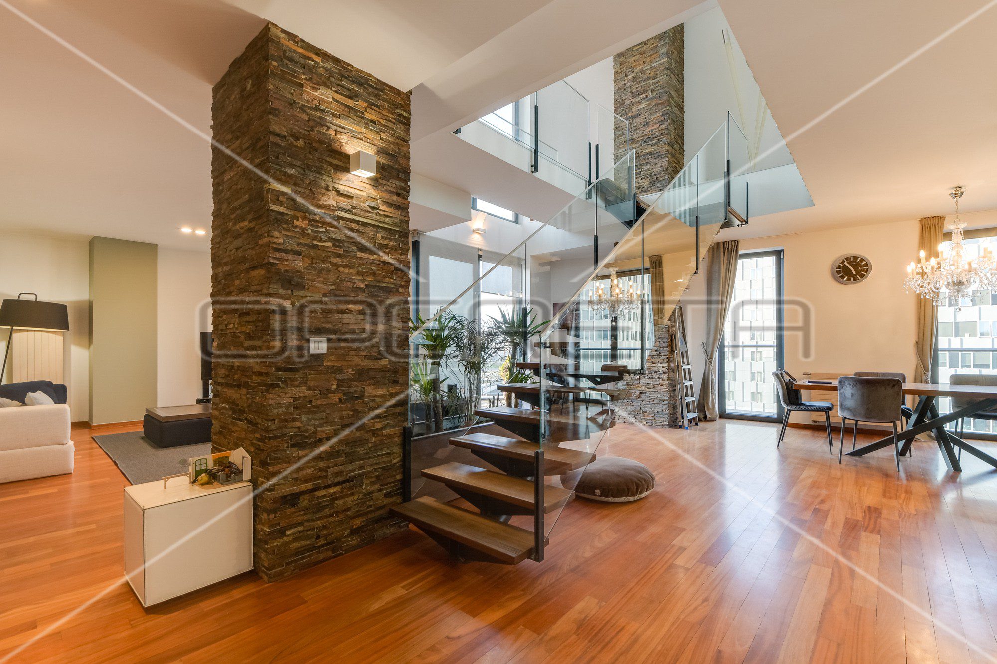 Prodaje se luksuzan, dvoetažni, peterosoban stan (5.kat) ukupne neto korisne površine 190,28m2 s parkirnim, garažnim mjestom na etaži -3 neto korisne površine 8,75m2.