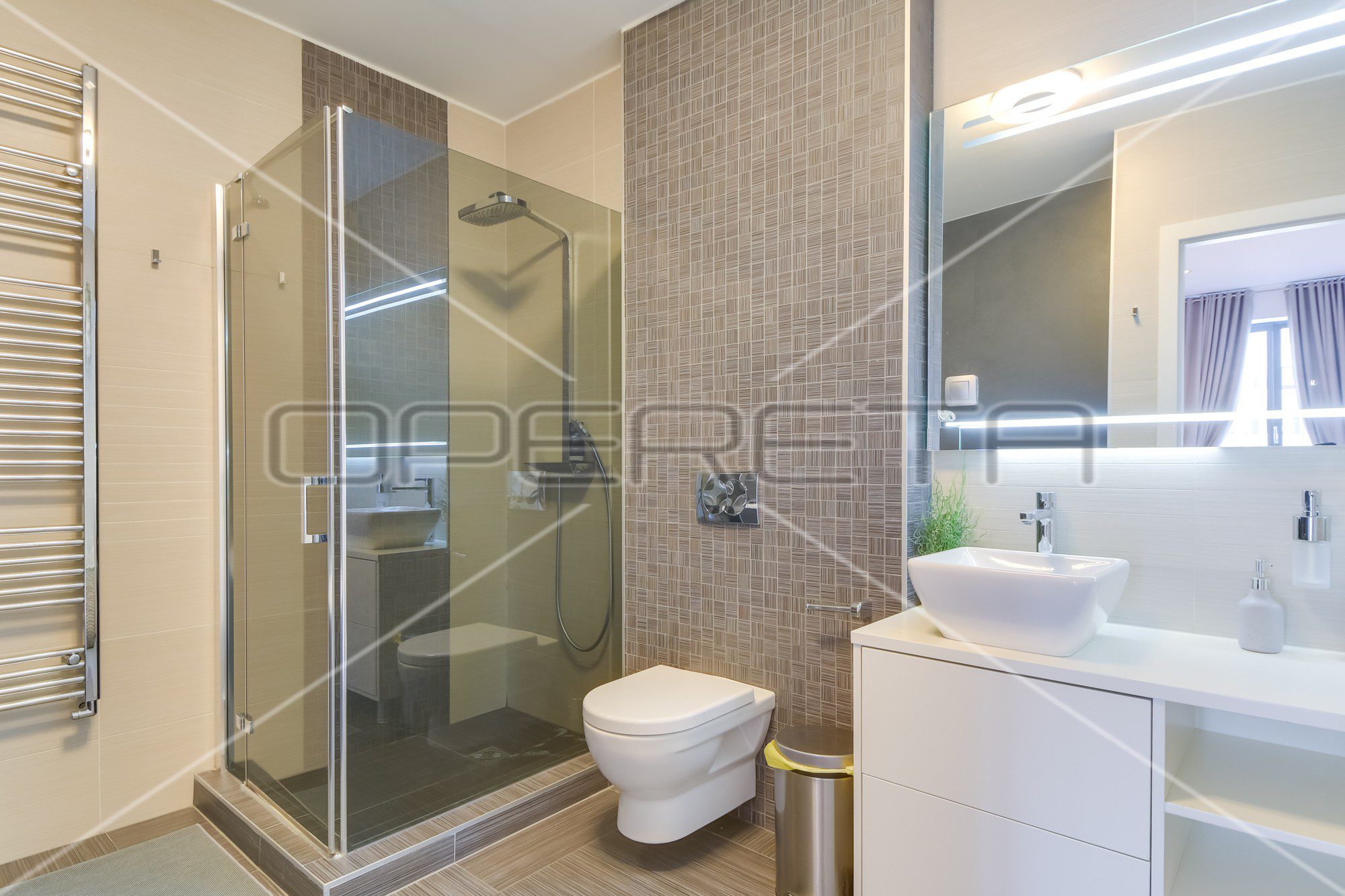 Podno grijanje, protuprovalna vrata, video portafon, garaža, kada, tuš kabina, klima, pristup osobama s invaliditetom, lift. Odlična lokacija.