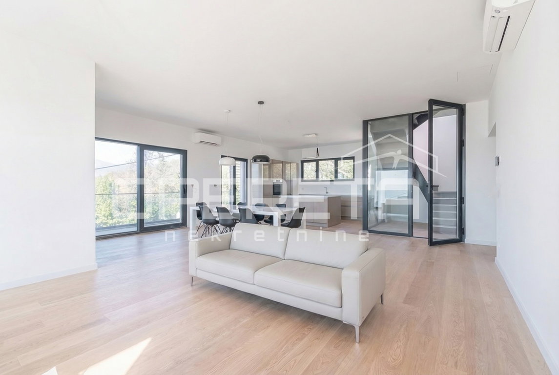 Posebnu vrijednost ovoj nekretnini daje raskošan vanjski prostor ukupne površine 109,08 m² koji uključuje terasu, dva balkona, prostranu krovnu terasu i privatni bazen. Ovaj jedinstveni vanjski ambijent stvara idealan prostor za opuštanje, druženja i uživanje u miru i prirodnom okruženju, uz potpunu intimu vlastitog doma.