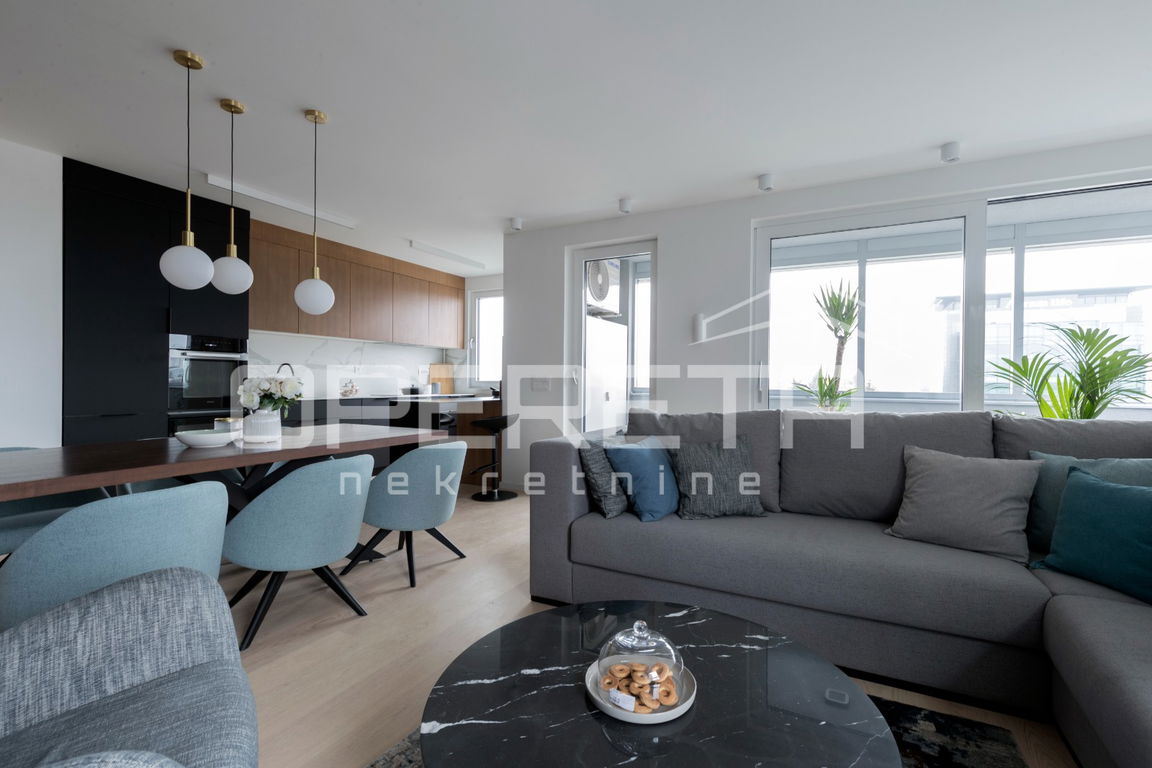 PRODJA, STAN, Saras Centar, Trnje. Stan se sastoji od ulaznog prostora, dnevnog boravka i blagavaonice, kuhinje, 3 spavaće sobe, 2 kupaonice, hodnika i 2 loggie. Stan je prekrasno i luksuzno uređen nadonak svih sadržaja za život. Stanu pripada i garažno parkirno mjesto. Prodaje se namješten i opremljen.