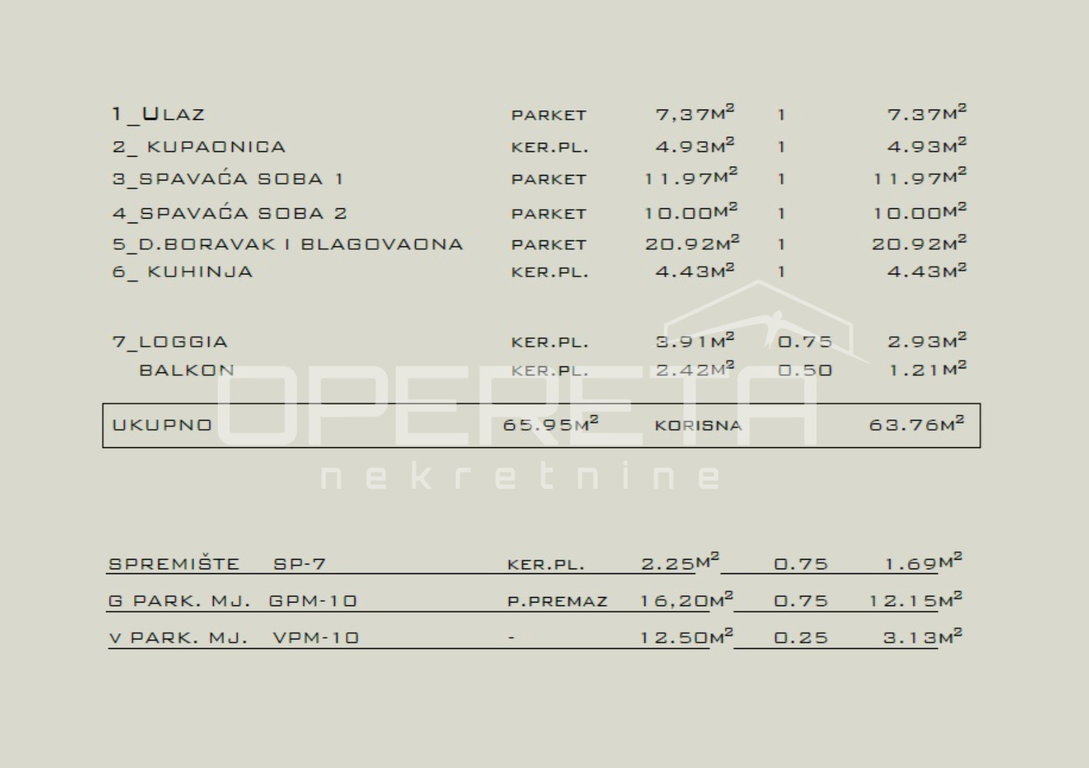 Stan: 65,95 m² bruto (63,76 m² neto)
