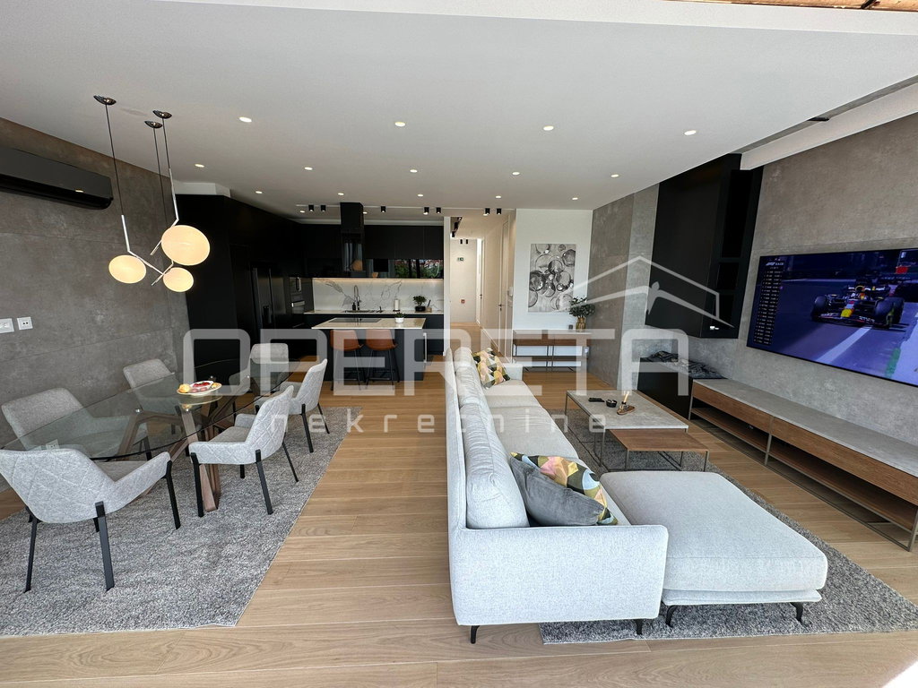 Stan se sastoji od open space dnevnog boravka, kuhinje i blagovaonice s izlazom na terasu, tri spavaće sobe s izlazom na balkon, dvije kupaonice te ulaznog hodnika.