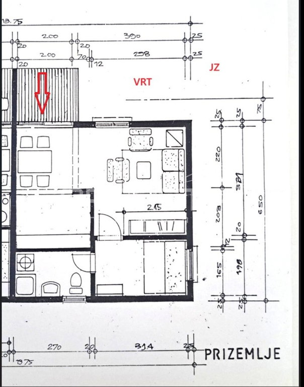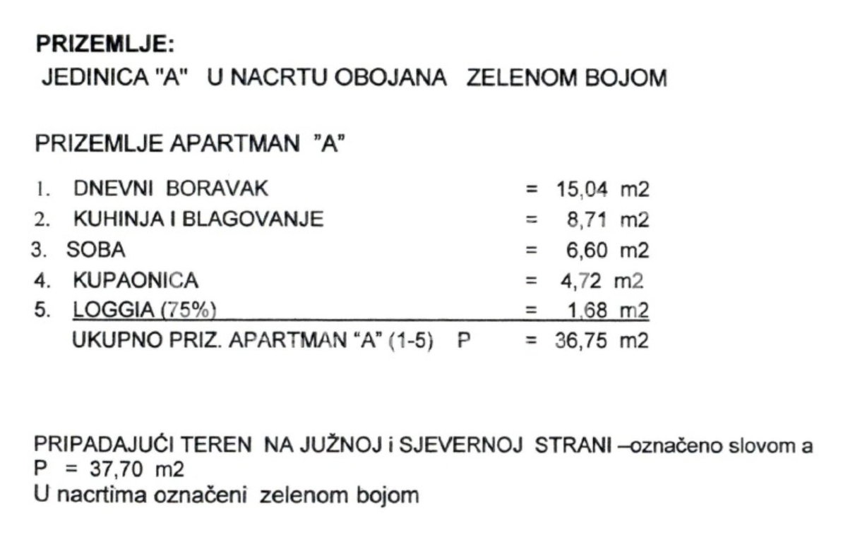 Stan ima zasebni ulaz, ispred kojeg je popločana i polunatkrivena terasa, na koju se nastavlja ograđeni vrt ( ukupno 38 m² ), kao ljetni produžetak dnevnog boravka, za druženje, roštilj, opuštanje.