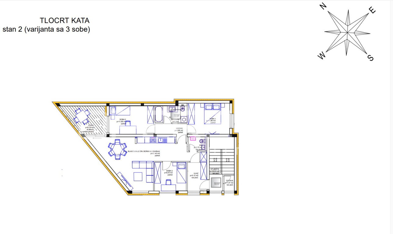 2 ili 3 spavaće sobe (u postupku gradnje se još može odabrati dvije ili tri sobe)