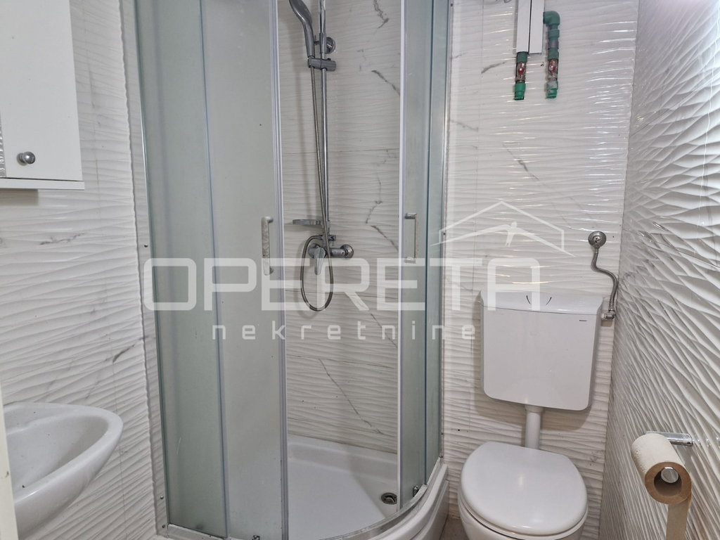 Raspored uključuje jednu spavaću sobu i kupaonicu, uz manji balkon, dok pripadajuće vanjske površine dodatno proširuju životni prostor. Dodatnu vrijednost pruža vlastita garaža, kao i osigurano vanjsko parkirno mjesto ispred zgrade, što značajno doprinosi svakodnevnoj praktičnosti.