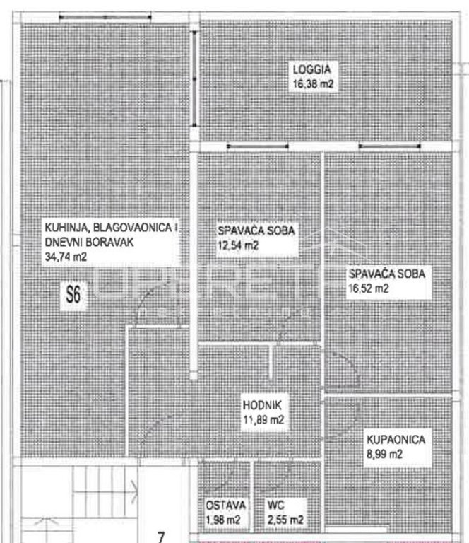Iz ponude izdvajamo stan S6 smješten na 2. katu, ukupne obračunske površine 101.50 m².