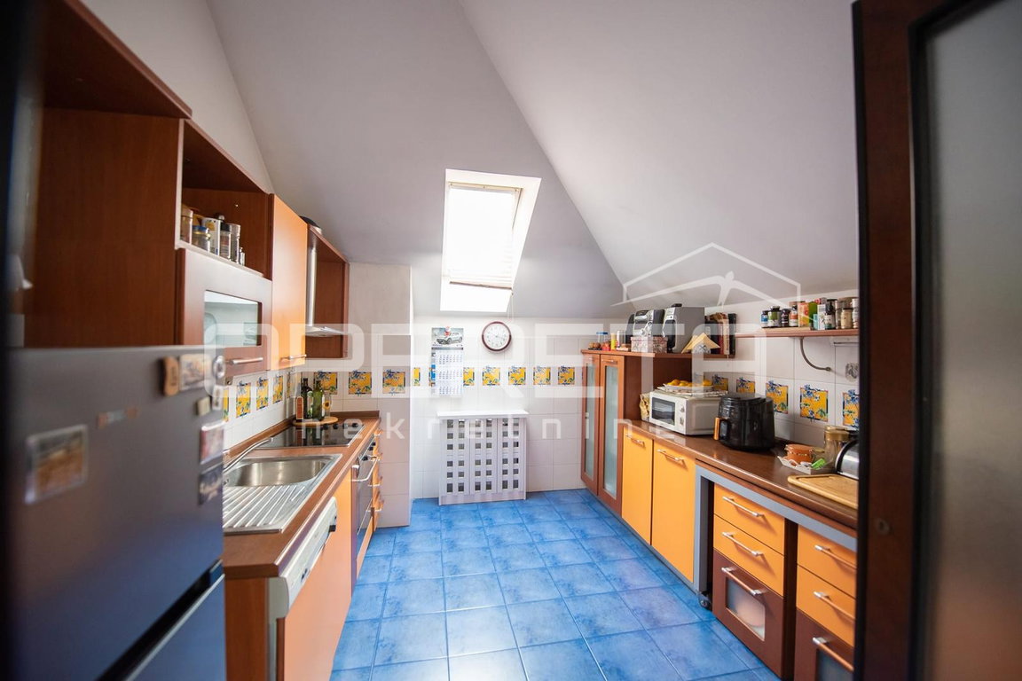 PRODAJA, STAN, ZAGREB, GORNJI BUKOVAC, Maksimir, 177m², 5-soban, terasa. Stan ima zatvorenog stambenog prostora 171m² koji se proteže na 2 etaže. Na donjoj etaži 102m² nalazi se ulazni predprostor koji vodi u veliku blagovaonicu povezanu s prostranim dnevnim boravkom, kuhinja, soba, ostava te gostinjski WC. Na gornjoj etaži 69m², nalazi se predprostor, 2 veće spavaće sobe te kupaonica s wc-om. U ukupnu navedenu kvadraturu stana je obračunata terasa po koeficijentu sa koje se pruža lijepi otvoreni pogled. Mogućnost kupovine posebno uknjižene garaže od 46 m², u koju stanu dva automobila te bicikli, romobili i dodatna oprema. Stan je idealan za Kupca koji želi živjeti na mirnoj lokaciji iznad Maksimirske šume, uz odličnu povezanost i blizinu urbanog središta grada, svega nekoliko minuta pješice od škole, vrtića, trgovina i svih važnih sadržaja. PREPORUČUJEMO!