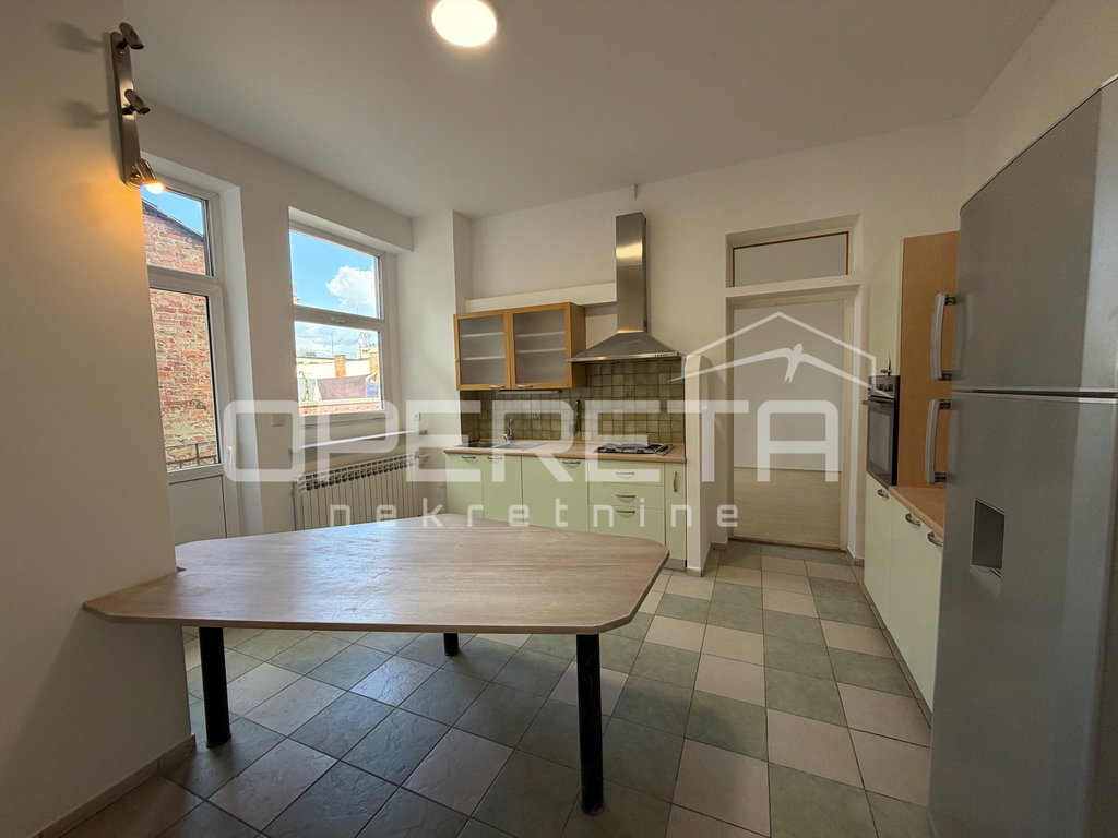 Iznajmljuje se prostrani i svijetao trosoban stan na izvrsnoj lokaciji u samom centru grada, u neposrednoj blizini HNK i parka Mažuranac. Stan se nalazi na 4. katu zgrade s liftom te je nenamješten, osim opremljene kupaonice, kuhinje s aparatima i zasebnog WC-a. Sastoji se od tri prostrane sobe, kuhinje, balkona, kupaonice i WC-a.