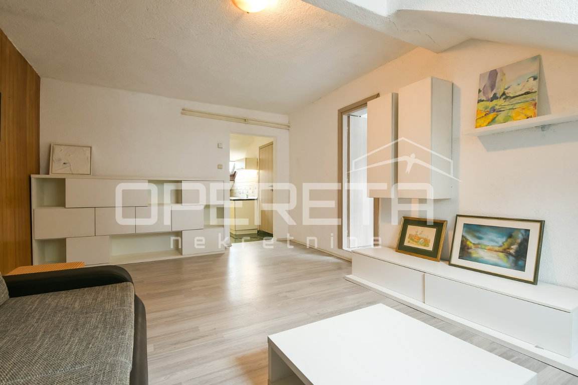 U samom srcu centra, nadomak Cvjetnog trga, u potkrovlju manje zgrade, nalaze se dva stana.