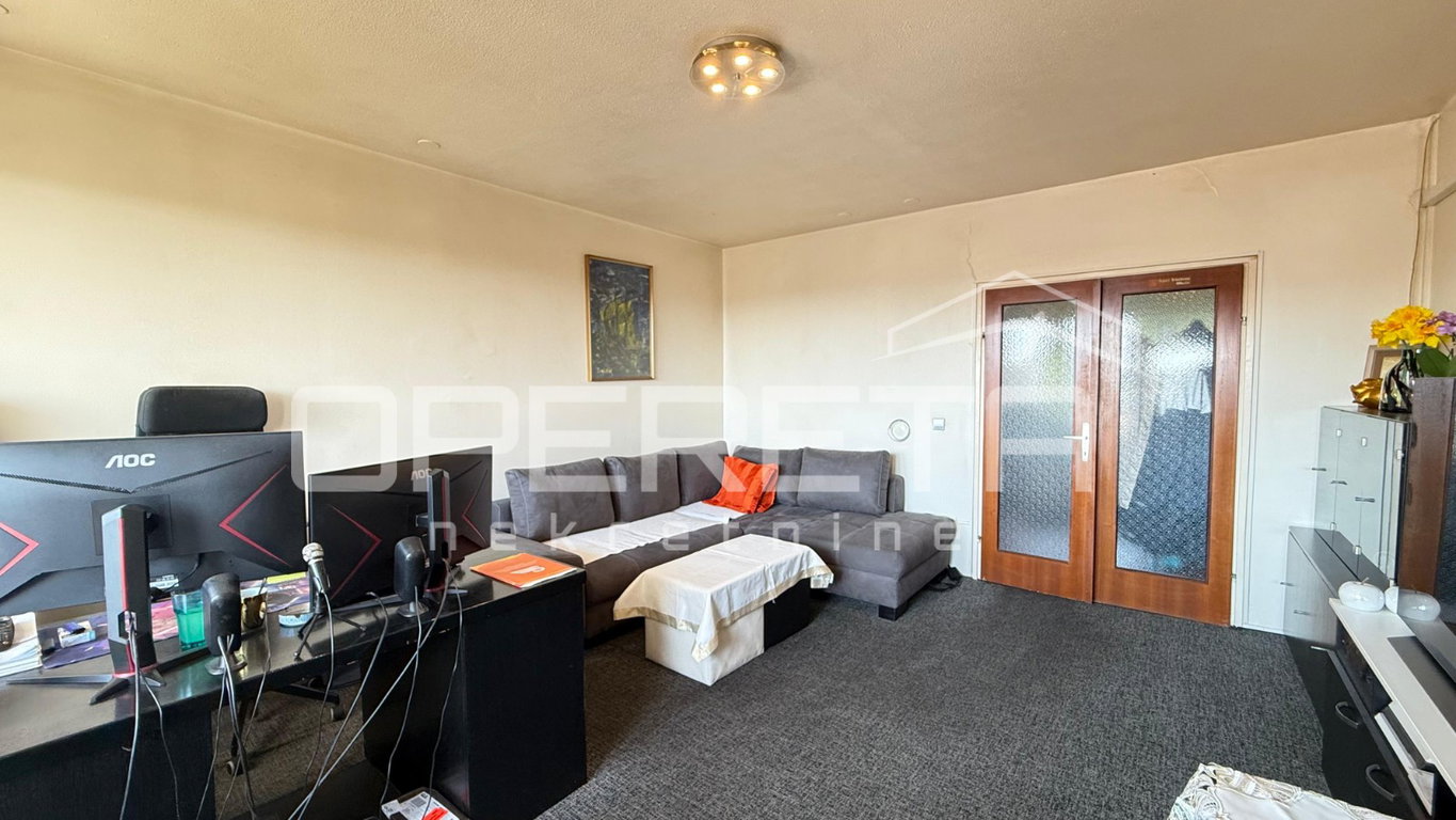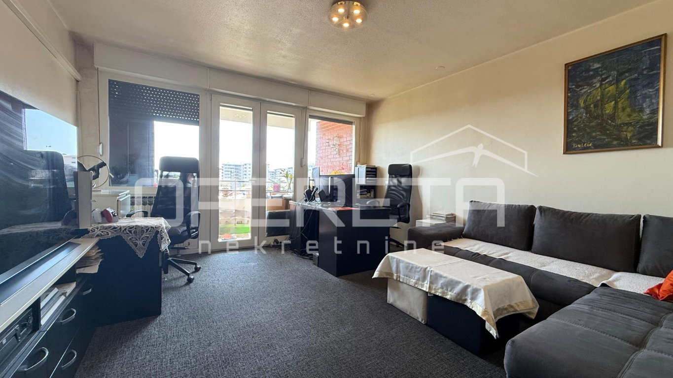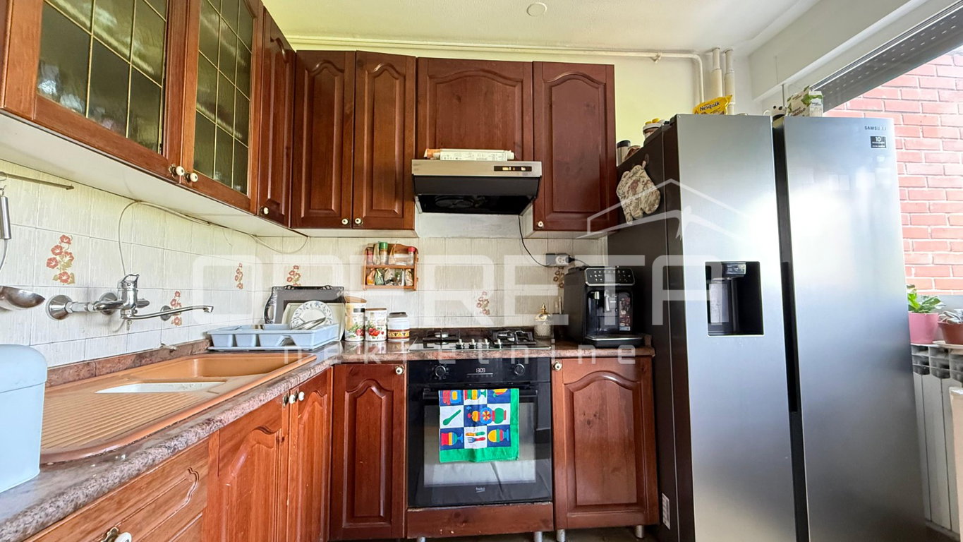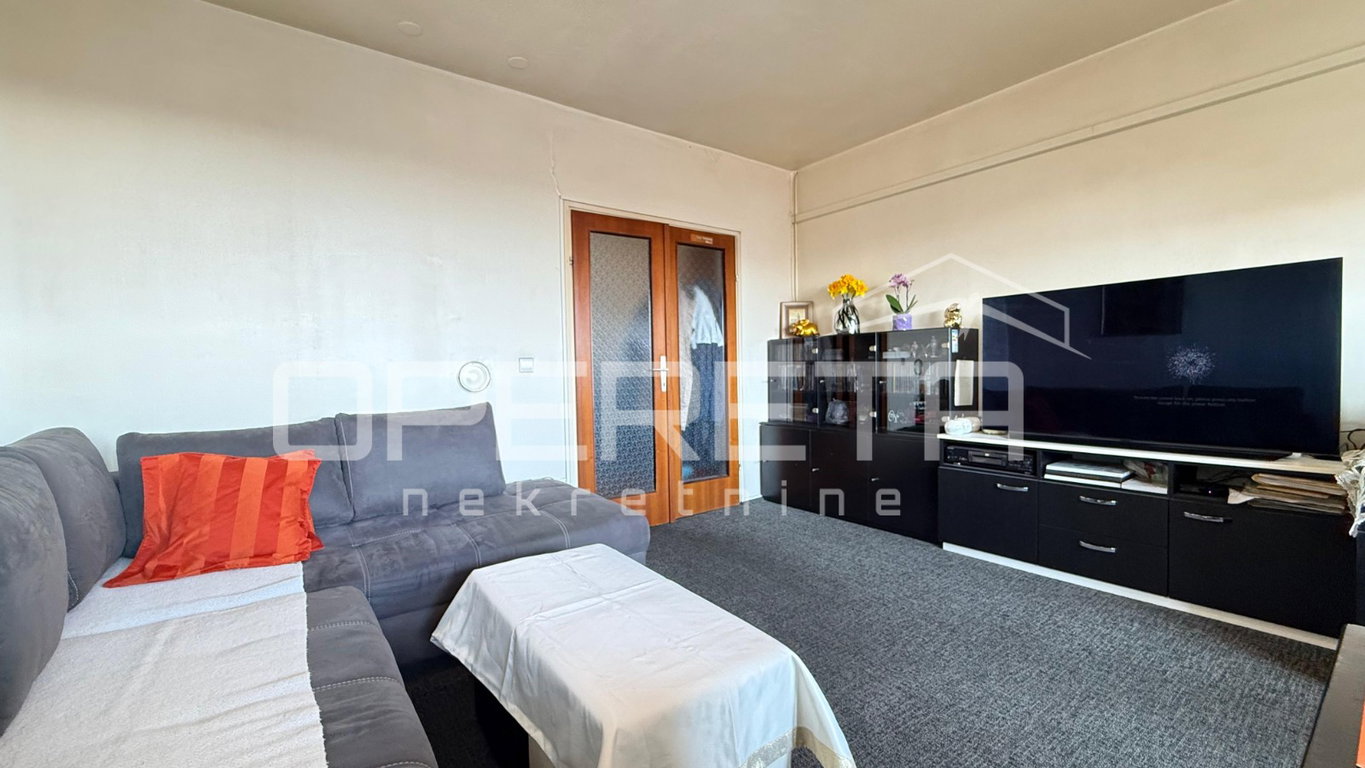U kvalitetno izgrađenoj zgradi iz 1984. godine na 4. katu se prodaje stan površine 82,67m². Sastoji se od ulaznog hodnika, dnevnog boravka s izlazom na balkon, kuhinje s blagovaonicom i izlazom na lođu, 2 spavaće sobe, ostave i garderobe. Stanu još pripadaju vanknjižno 2 spremišta (jedno na katu gdje je smješten stan i jedno u podrumu zgrade). S obzirom na orijentaciju (sjever-jug), stan je prozračan te je prirodno osvjetljen. U dobro je stanju te ne zahtijeva veća ulaganja. Odlična prilika za obitelj s obzirom na blizinu škole, vrtića i javnog prijevoza kao i ostalih bitnijih sadržaja za život! Vlasništvo i dokumentacija uredni!
