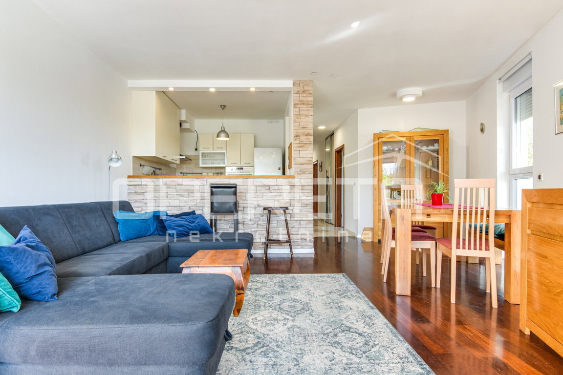 Prodaje se prostran i svijetao stan idealan za ugodan obiteljski život. Stan se sastoji od tri spavaće sobe te open space koncepta koji objedinjuje kuhinju, blagovaonicu i dnevni boravak, iz kojeg se izlazi na lođu veličine 3,47m² južne orijentacije. Stan ima ostavu te veliku kupaonicu s WC-om.