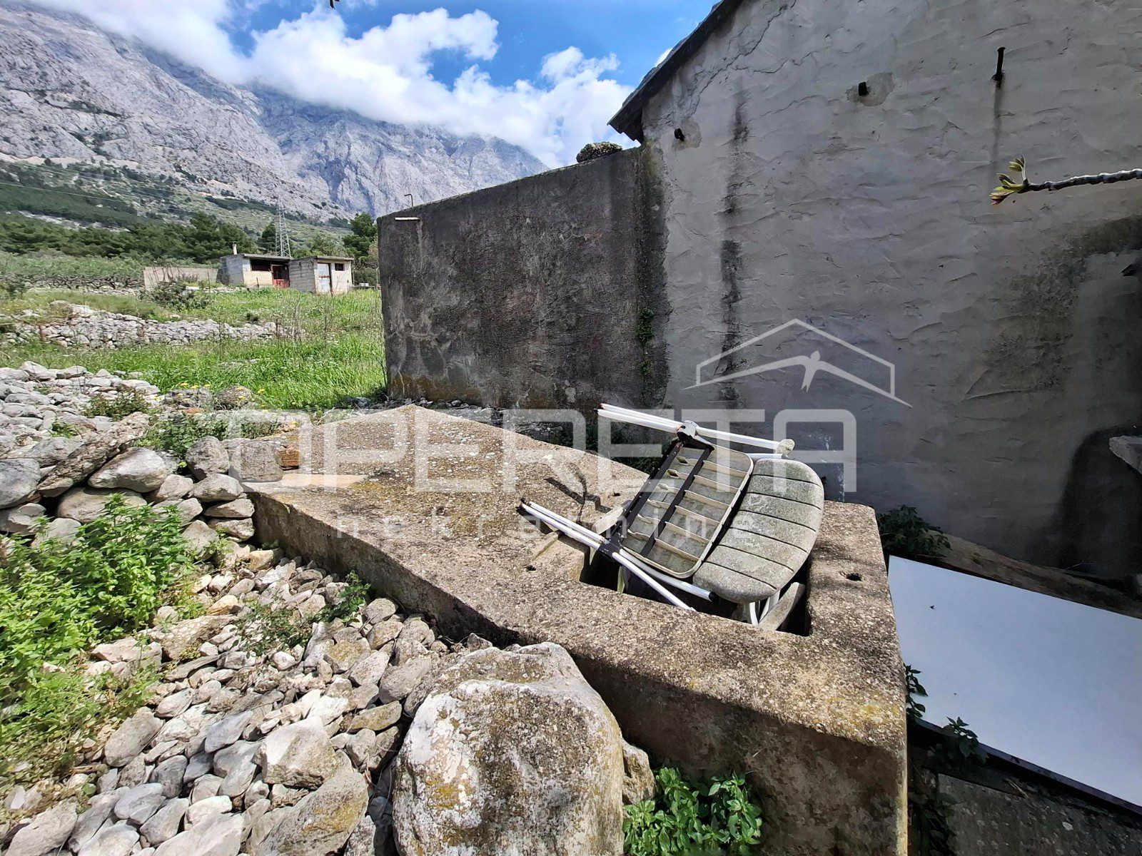Parcela pravilnog oblika, uz pristupni put i potočić, ograđena je i uređena, a na njoj se nalazi starija kućica iz 1980-ih godina, površine oko 50 m². Objekt nije legaliziran, no može se legalizirati i adaptirati unutar postojećih gabarita. Trenutni raspored uključuje dnevni boravak s kuhinjom i blagovaonicom, radionu te tavanski prostor koji služi kao spremište – idealno za privremeni boravak ili početnu bazu za budući projekt.