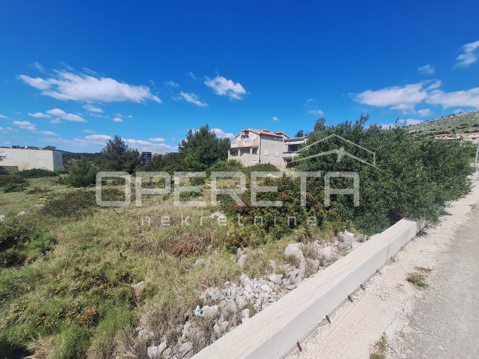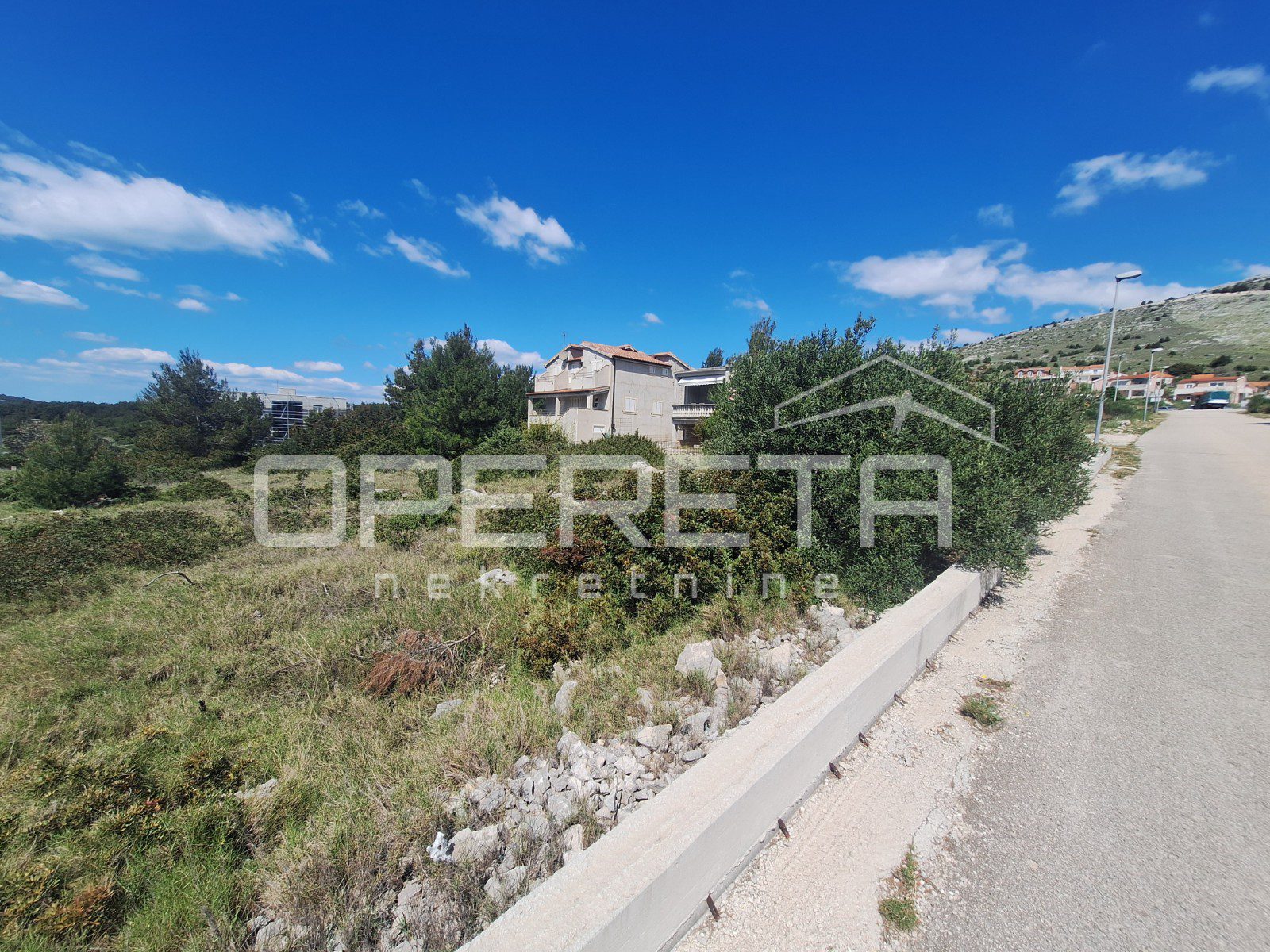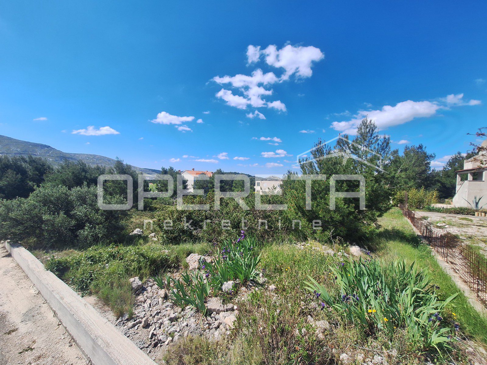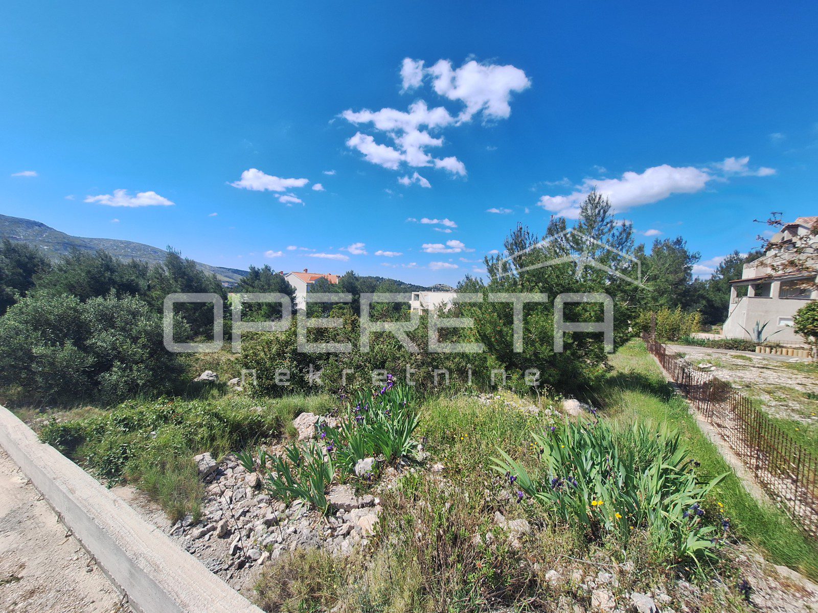 Zemljište je pravilnog oblika, približnih dimenzija 22x23m, ograđeno i smješteno na blagoj padini prema moru. Sva potrebna infrastruktura nalazi se odmah uz zemljište.