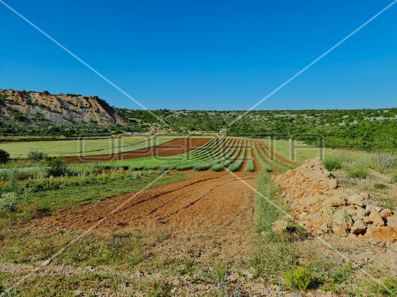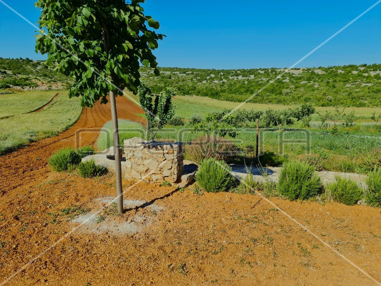 Imanje već godinama udovoljava strogim ekološkim standardima – posađeno je 50 maslina, 22 smokve, nasad smilja te polje lavande. Tlo je višegodišnje provjereno i potvrđeno kao nezagađeno, spremno za nastavak ekološke proizvodnje.
