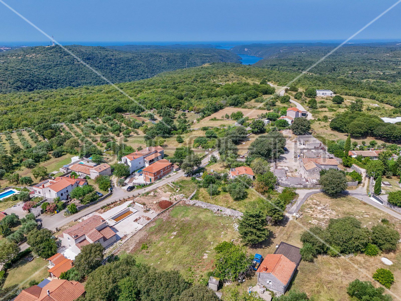 Prodaje se građevinska parcela površine 1333m2 s idejnim riješenjem za dvije kuće površine 120m2 raspoređene na dva kata. S prvog kata se pruža pogled prema Limskom kanalu.