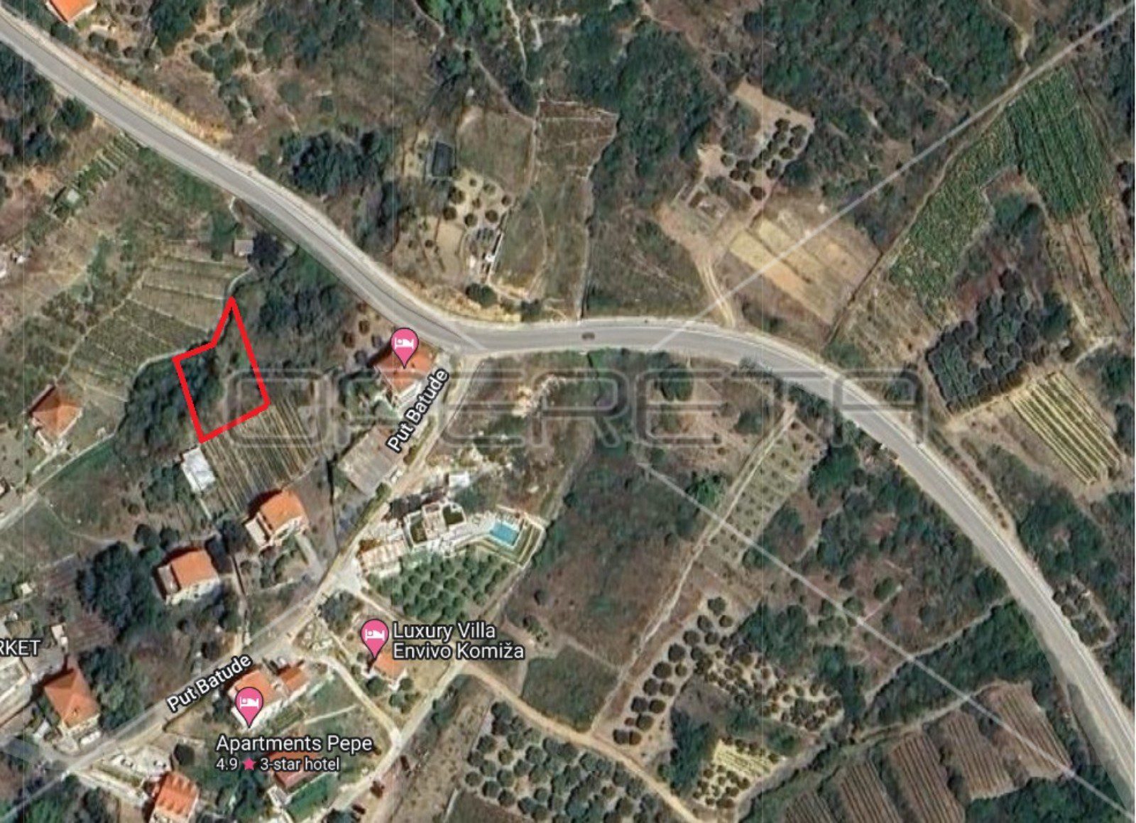 U idiličnoj Komiži na atraktivnoj poziciji samo 3min hoda od Rive i mora, i svih sadržaja poput autobusne stanice, banke, restorana i kafića , na povišenoj poziciji s pogledom na more nalazi se zemljište za višestambenu samostojeću kuću sa maksimalno 3 stana. Moguća je izgradnja prizemlja i 2 kata. Površina parcele je 589 m2, osiguran joj je pristupni put. Tlocrtno je izgradivo 130m2 BRP, dakle ostaje površina za parking vlasnika te druge sadržaje poput bazena i zelenila.