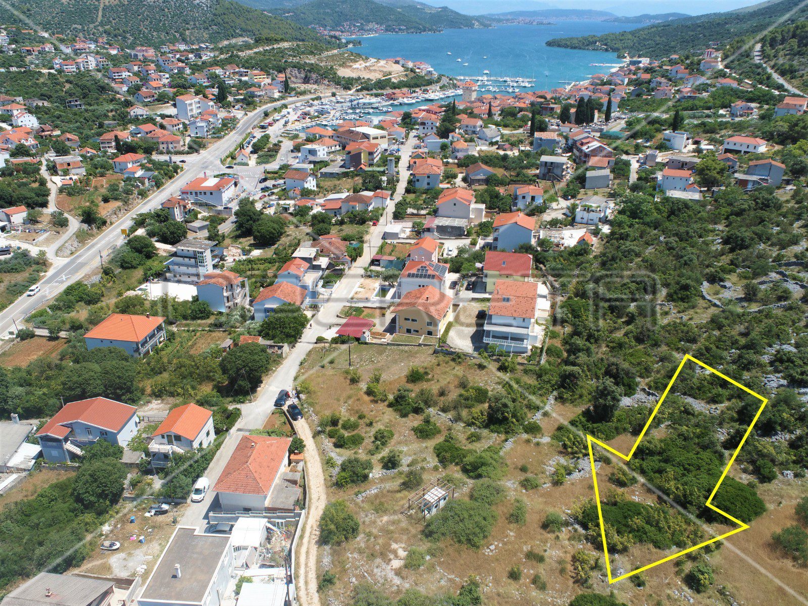 U mirnom dijelu Marine, nedaleko od mora, prodaje se građevinsko zemljište površine 694 m², pružajući idealnu priliku za izgradnju jedne obiteljske kuće ili luksuznog ljetnikovca u blizini obale.