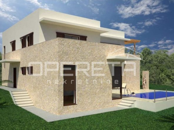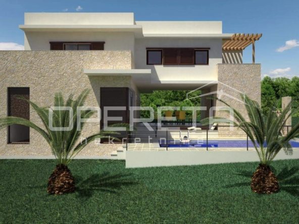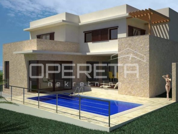 Prodaje sa građevinskom dozvolom za vilu s bazenom, planirane površine tlocrta 140 m2, bruto površine 243 m2.