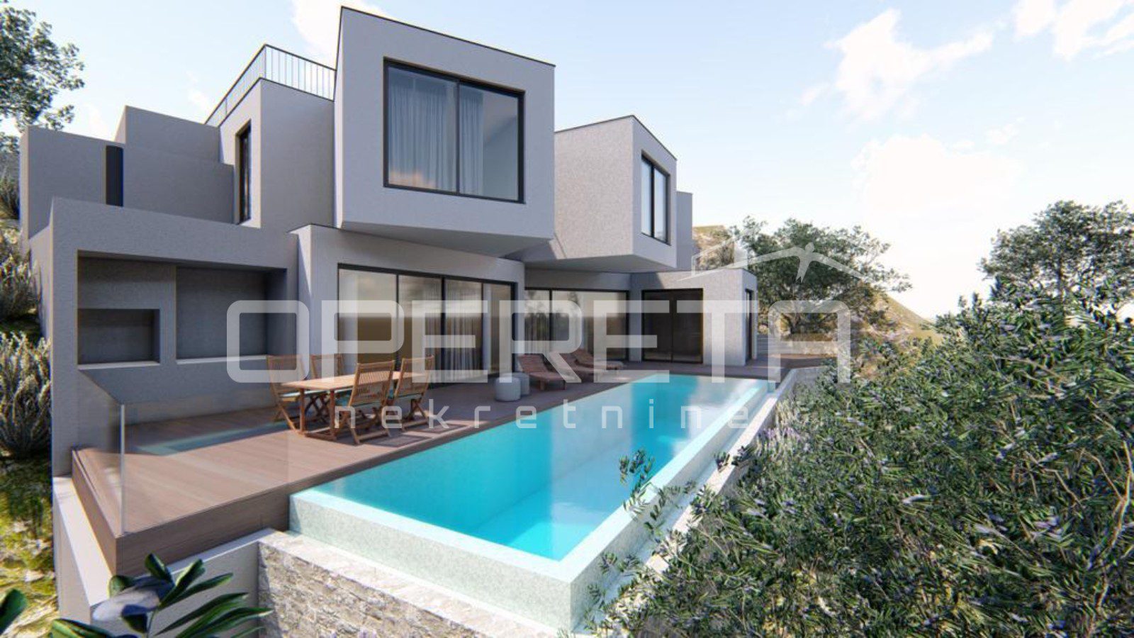 Zemljište dolazi s dovršenim projektom izgradnje moderne vile s bazenom te važećom građevinskom dozvolom, što budućem vlasniku omogućuje brzi početak gradnje. Prema projektu, vila se prostire na tri etaže – suterenu, prizemlju i prvom katu – i obuhvaća četiri spavaće sobe, četiri kupaonice, dodatni gostinjski WC te impresivan bazen dimenzija 12 x 3 metra.