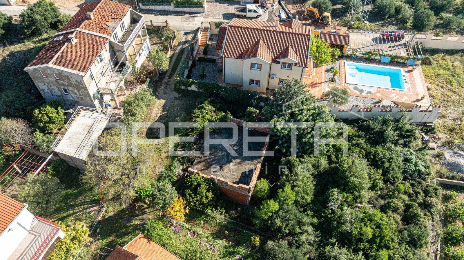 Građevinsko zemljište od 359 m² s već započetim objektom nudi jedinstvenu priliku budućem vlasniku da nastavi ili dovrši gradnju prema vlastitim željama. Smješteno je u prekrasnom i mirnom mjestu Stankovići, na svega pola kilometra zračne udaljenosti od mora, s prekrasnim pogledom na more, što osigurava savršenu kombinaciju privatnosti i prirodne ljepote.