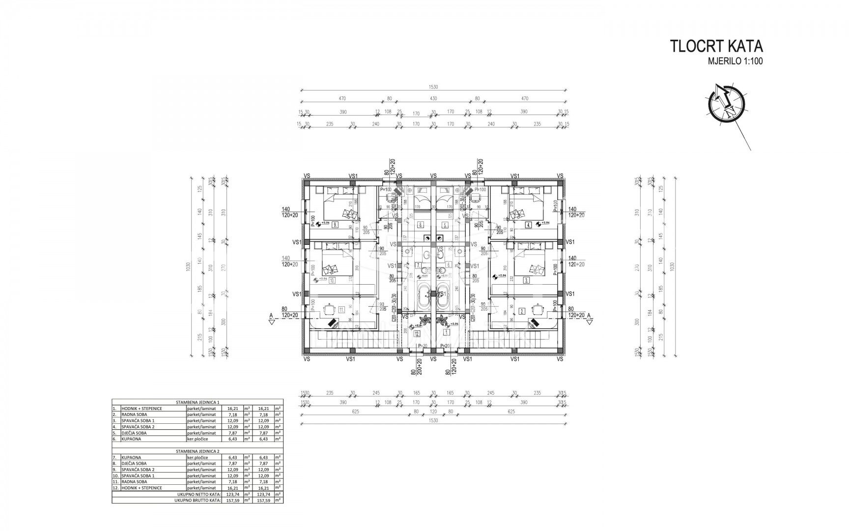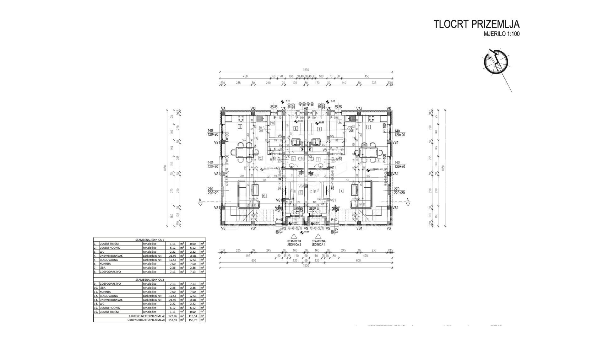 Građevinska dozvola za izgradnju dvije moderne kuće (dvojni objekat – dvije stambene jedine po 122 m2) u mirnom naselju uz sve potrebne sadržaje.