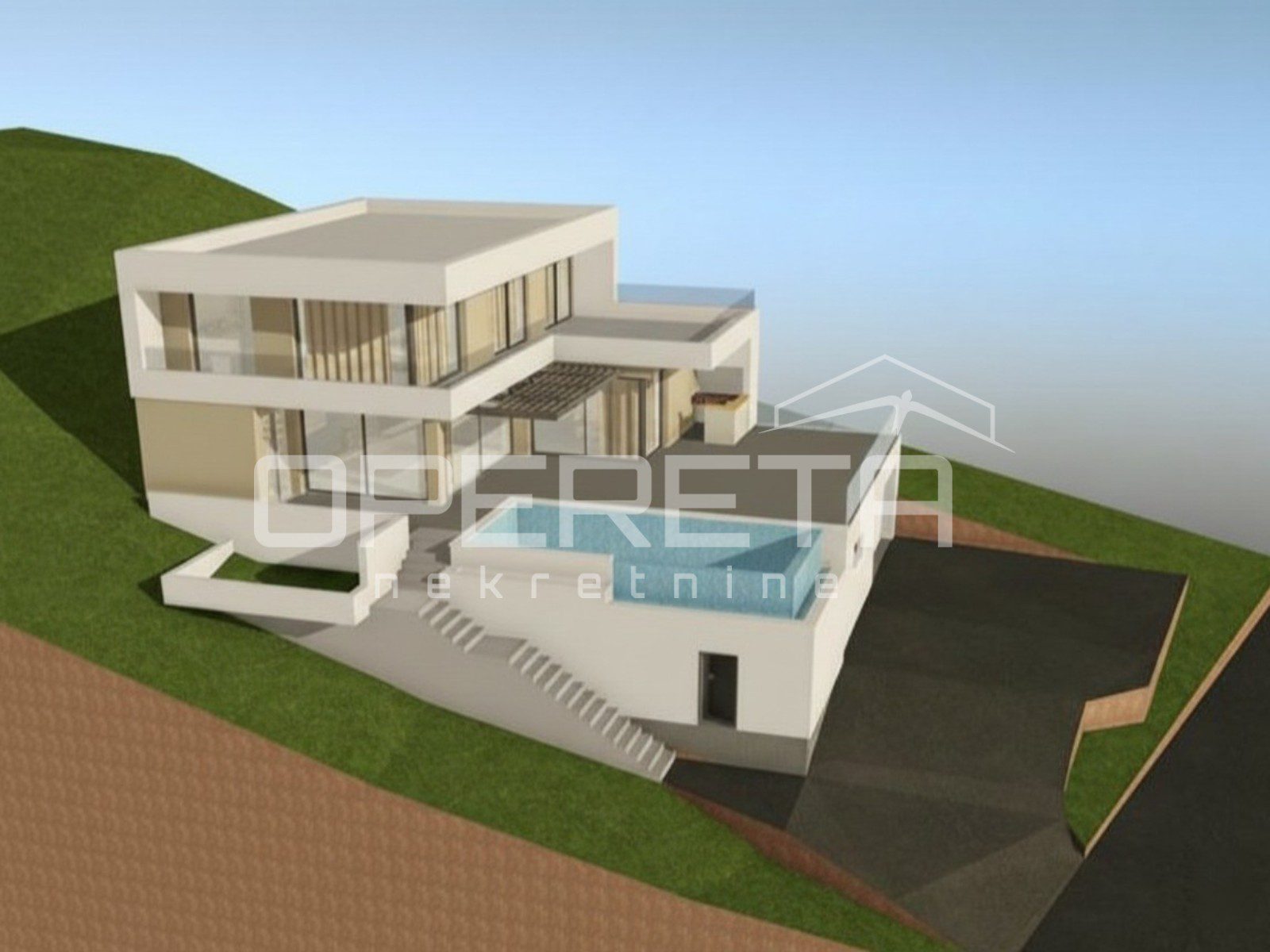 Zemljište dolazi s pravomoćnom građevinskom dozvolom za modernu stambenu građevinu s otvorenim bazenom, s katnošću suterena, prizemlja i jednog kata.
