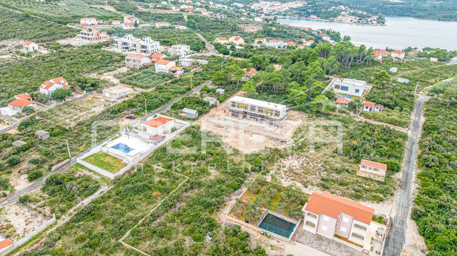 Parcela ima osiguranu infrastrukturu s priključcima za vodu i struju te pristupni put koji vodi sve do obale. Smještena je u tihom susjedstvu na početku širenja, okružena zelenilom i prirodom koja otoku daje poseban ugođaj.