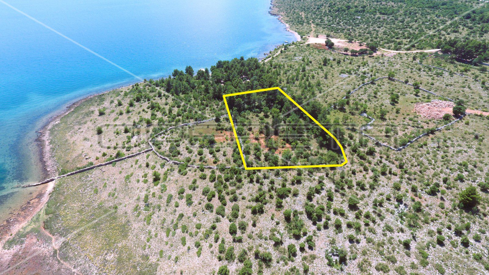 S parcele se proteže pogled na more, te je ograđen suhozidom.