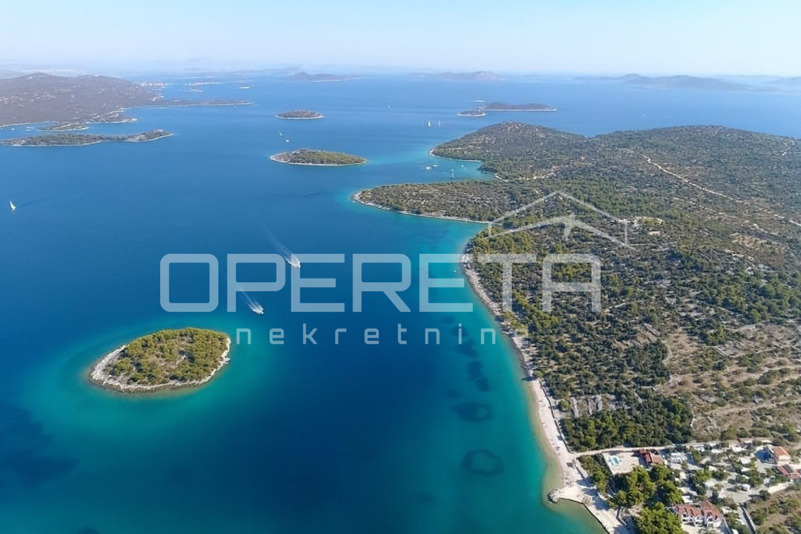 Na prodaju je iznimno rijetka i atraktivna parcela površine 9.378 m² smještena na otoku Dražemanski Veli, skrivenom dragulju murterskog arhipelaga. Zemljište pravilnog pravokutnog oblika proteže se cijelom širinom otoka u duljini od 280 metara te povezuje dvije obale: istočnu, širine 41 metar, s prirodnom kamenitom rivom idealnom za privez jahti i manjih plovila, te zapadnu, jednako široku, s mirnom šljunčanom plažom savršenom za opuštanje u potpunoj privatnosti. Otok se nalazi svega nekoliko kilometara od kopna, udaljen 3,7 km od mjesta Jezera i 4 km od Tribunja.