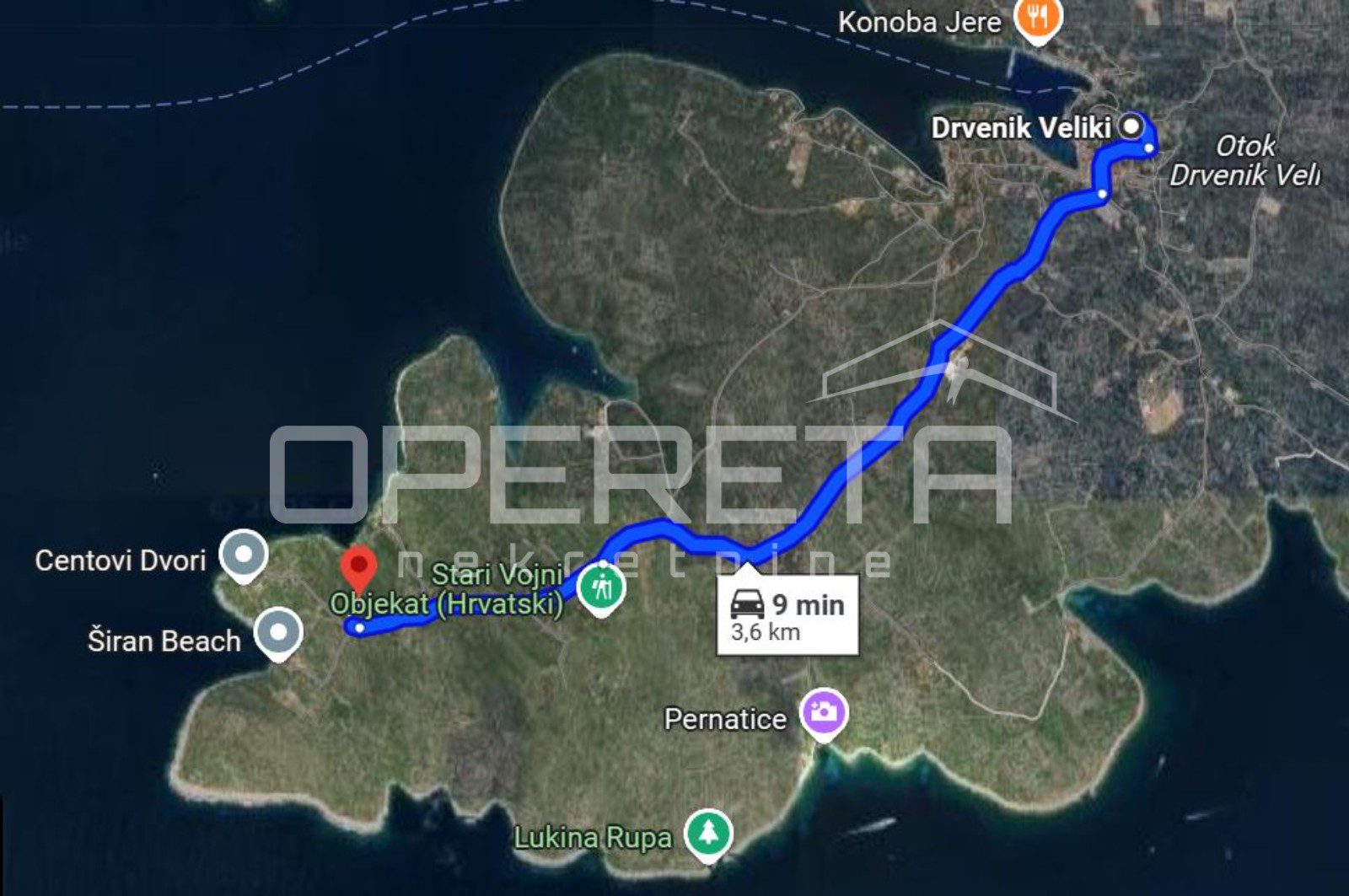 Na prodaju je poljoprivredno zemljište smješteno na Drveniku Velikom, idealno za poljoprivrednu proizvodnju, maslinarstvo, vinogradarstvo ili postavljanje manje nekretnine za koju nije potrebna građevinska dozvola. Zemljište se prostire na 760m², a pristup je s makadamske ceste moguć autom, kamionom ili građevinskim strojevima, zemljišta su ograđena suhozidima. Osim toga, pruža predivan pogled na more i okolnu prirodu, a nalazi se svega 3km od centra Drvenika i pristaništa, te 200m od mora..