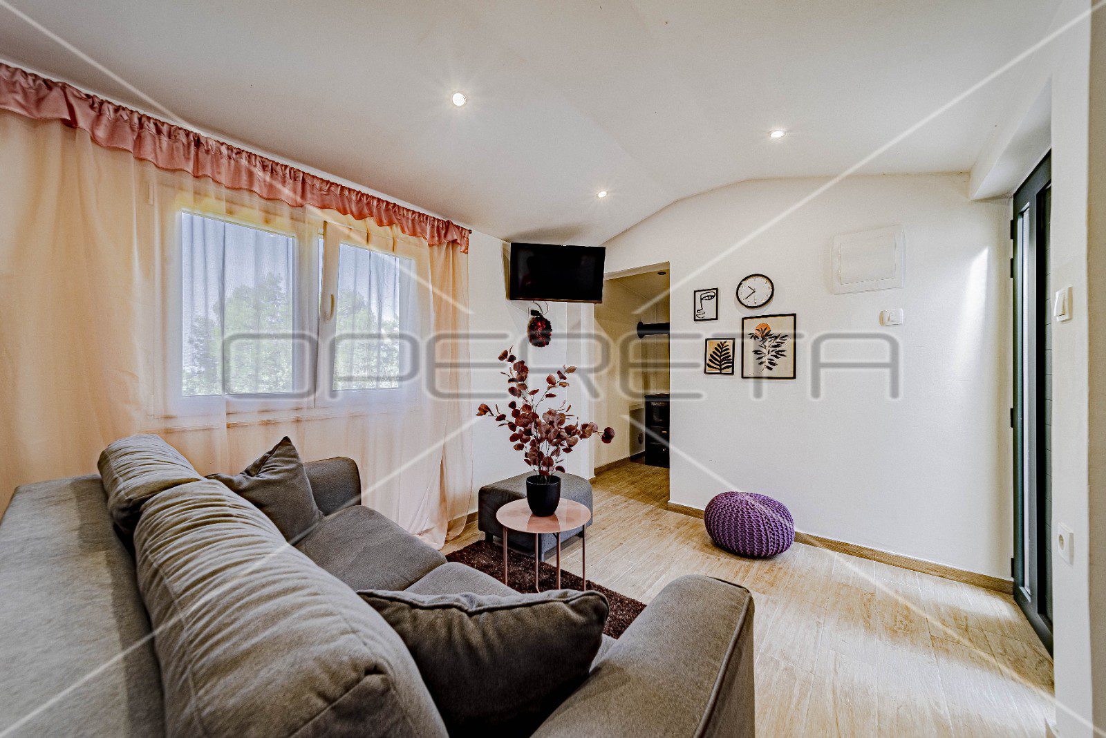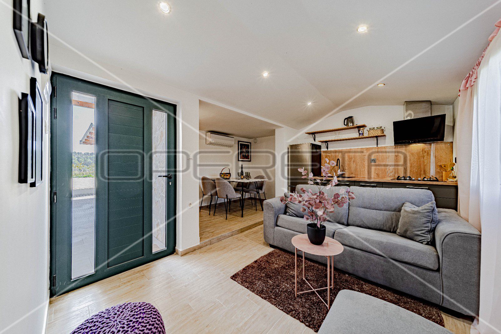 Na parceli se nalazi i jednostavna, ali funkcionalna kućica koja pruža osnovne uvjete za smještaj. Njena pozicija nudi mir i privatnost, savršena za one koji žele raditi na zemlji ili se povremeno odmarati u prirodi.