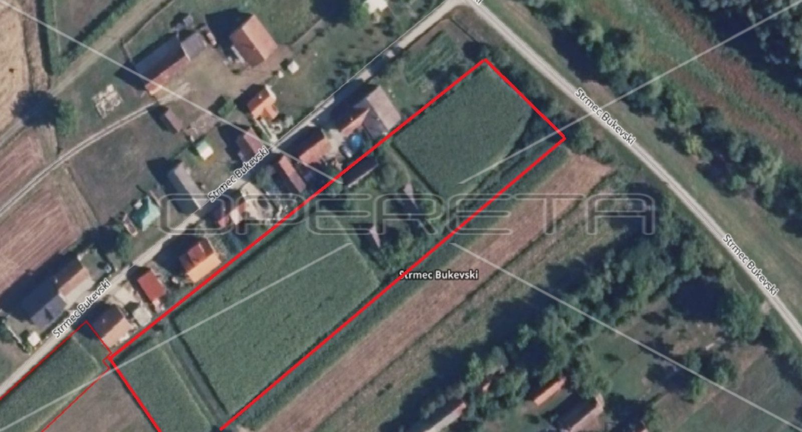 Prodaje se zemljište ukupne površine 6866 m2. Širina parcele je 20m, a dužina 137m. Ima ulaz s dvije strane i moguća je parcelacija na više manjih parcela. Na zemljištu je kuća i pomoćna zgrada.