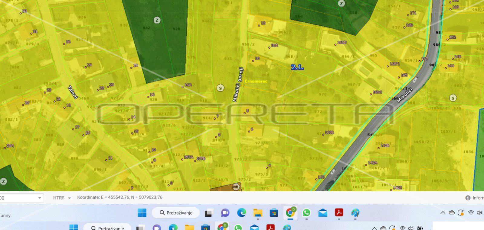 PRODAJA, ZEMLJIŠTE, MIKULIĆI, Gornji Mikulići, 1165 m2. Građevinsko zemljište od 1165 m2, pravokutnog je oblika, na izuzetno mirnoj lokaciji s pogledom na cijeli grad! Na parceli maksimalna izgradivost 1 građevine od 400 m2 BRP odnosno samostojeća kuća koja u visinu može ići jednom nadzemnom etažom + potkrovlje.