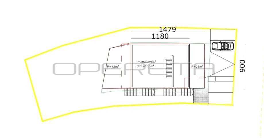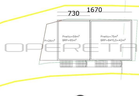 Na zemljištu je predviđena urbana vila sa 4 stana, ukupne površine 480m2 BRP. U projektu je i tehnicki podrum koji nije uračunat u BRP. Projekt je moguće mijenjati i prilagođavati u toku izgradnje, po pravilima struke.