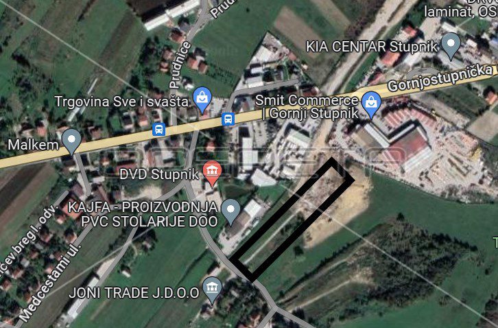 Prodajemo građevinsko zemljište u Stupniku, u neposrednoj blizini Gornjostupničke ceste. Zemljište je velikim dijelom u zoni koja je namijenjena za komercijalno industrijsku uporabu. Jedan dio parcele se nalazi u zoni koja je namijenjena za rekreaciju. Vlasnik je podnio zahtjev da se i taj dio prenamijeni u I,K.