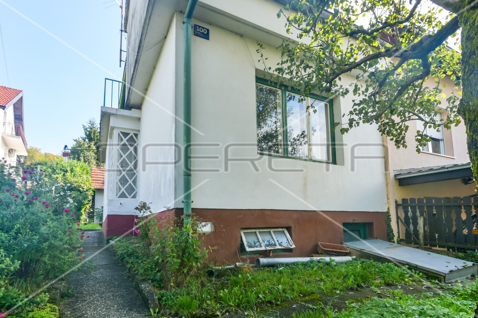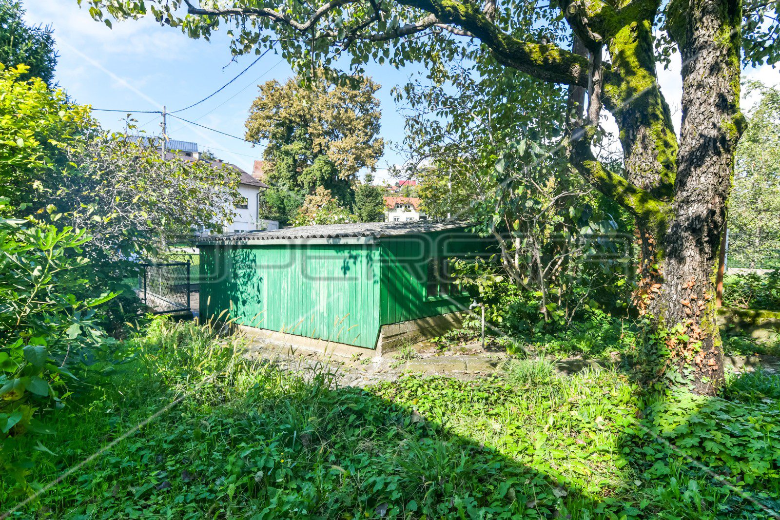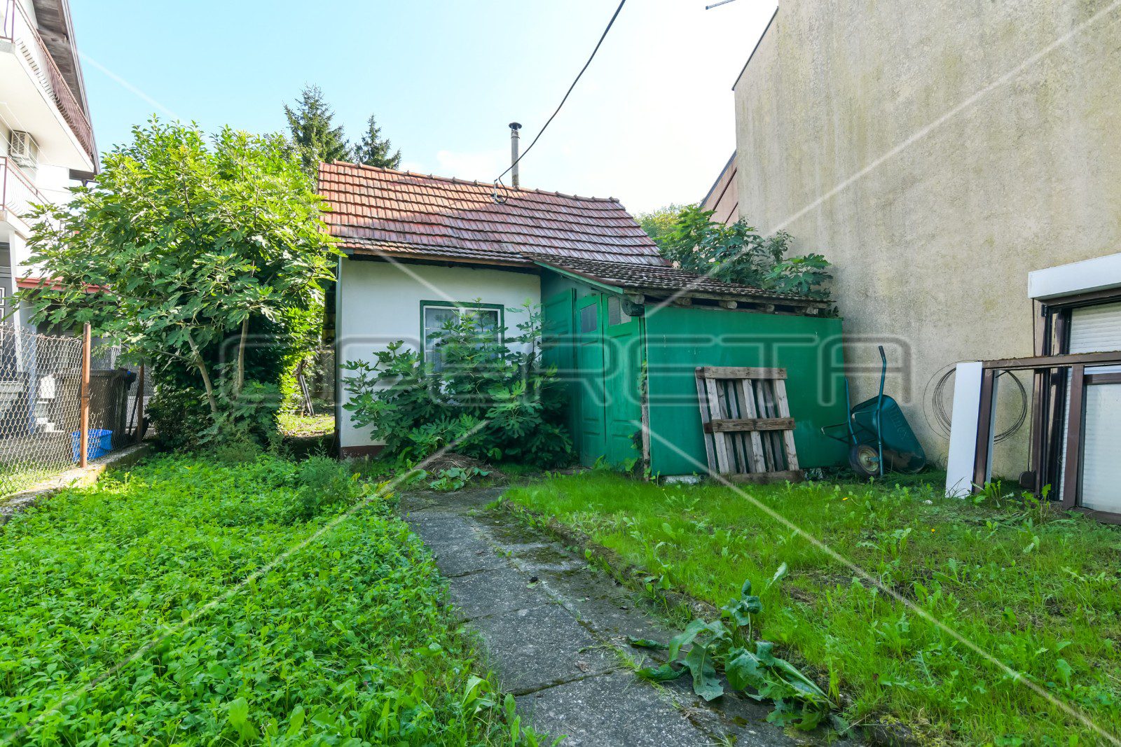 Na manjoj čestici od 479m2, nalazi se kuća za rušenje s pomoćnim objektima (garažom, ljetnom kuhinjom i radionom). Moguća je zamjenska gradnja ili rekonstrukcija, max BRP može biti veća od dopuštenih, ali bez povećanja u odnosu na postojeće uz uvjet da su postojeći objekti na parceli legalni.
