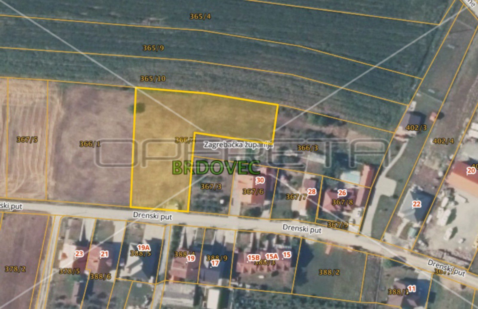 PRODAJA ZEMLJIŠTA, Brdovec, Drenski put, 2561 m2. Zemljište se nalazi na atraktivnoj lokaciji na svega 10 minuta vožnje do Zaprešića. Kompletno naselje u kojem se nalazi je novije gradnje. Sva infrastruktura je provedena. Zemljište se nalazi na ravnoj parceli te ima direktan izlaz na cestu. Zemljište je stambeno poslovne namjene.