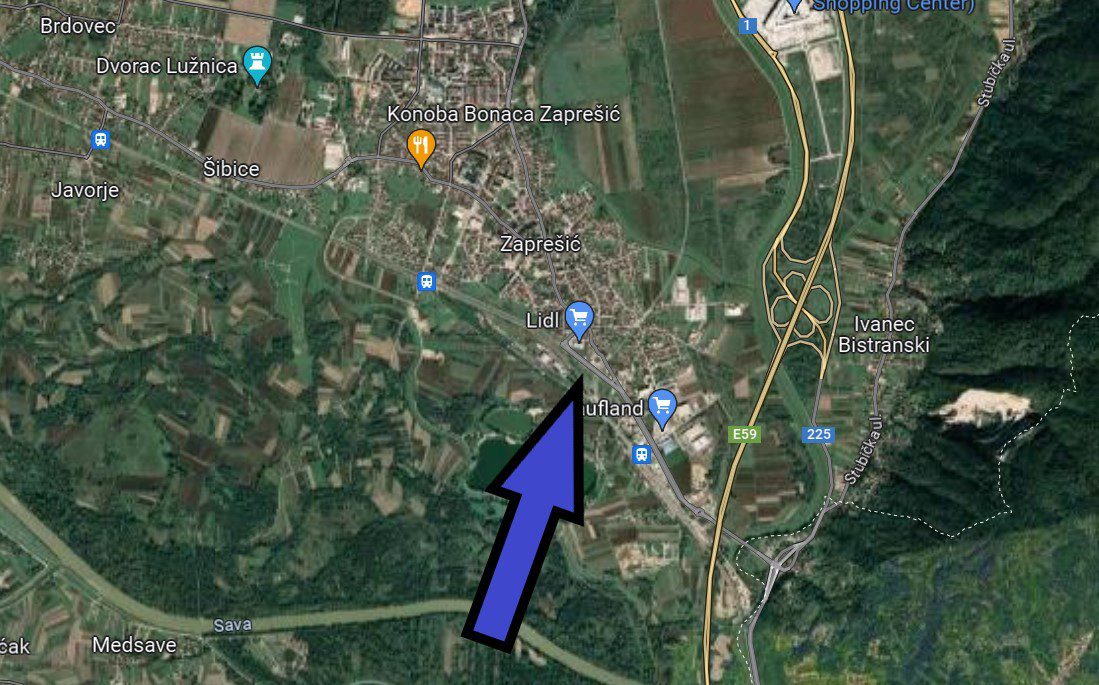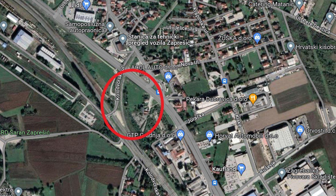 Parcela se nalazi na ulazu u Zaprešić i smještena je uz podvožnjak nove zaobilaznice. Pored zemljišta se nalazi ROFIX d.o.o. i željeznička postaja. Zemljište se sastoji od pet katastarskih čestica, koje zajedno čine površinu od 6.046m2.